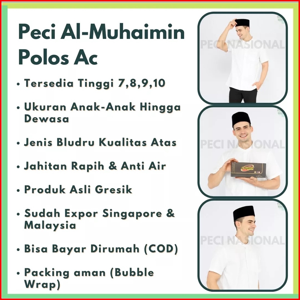 Peci Songkok Kopiah Hitam Polos Al Muhaimin Tinggi 7 8 9 10 Ukuran 2-12