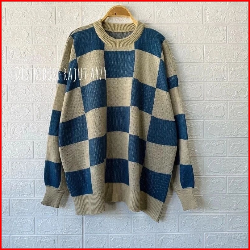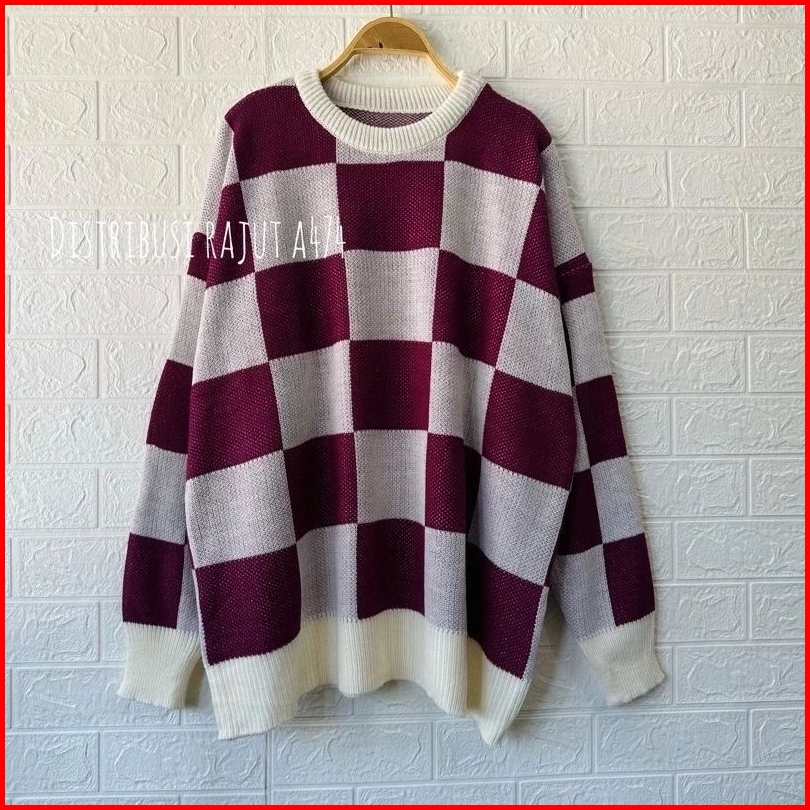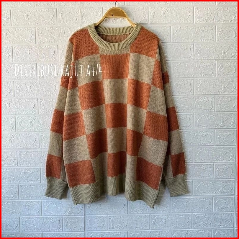 Anjani Baju Atasan Knitwear Sweater Rajut Kotak Kotak Oversize Wanita Korean Stayle