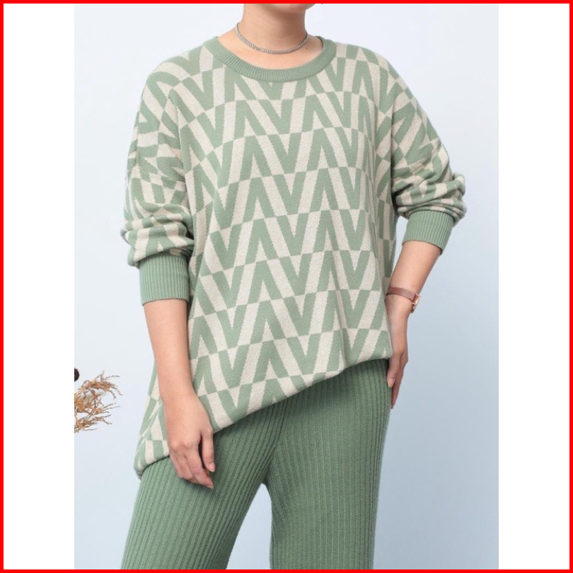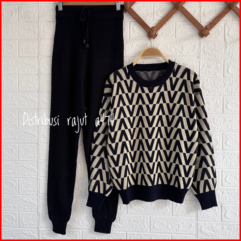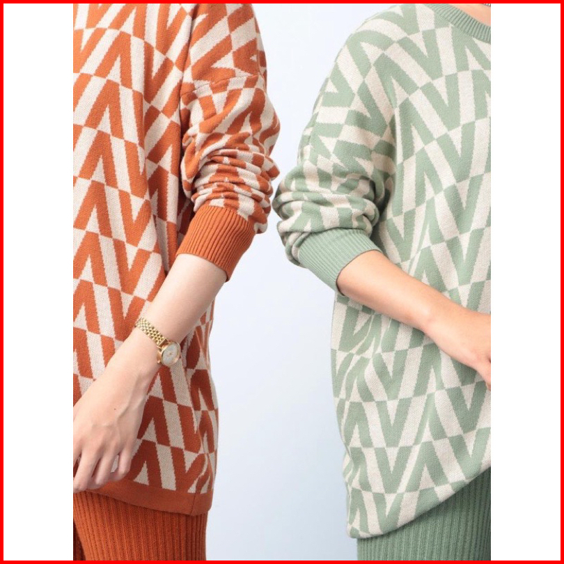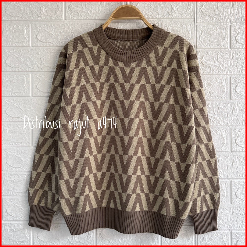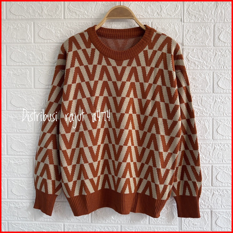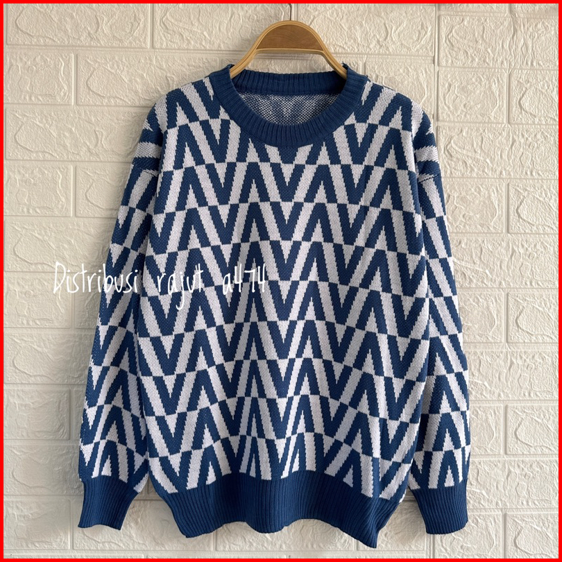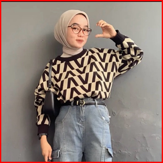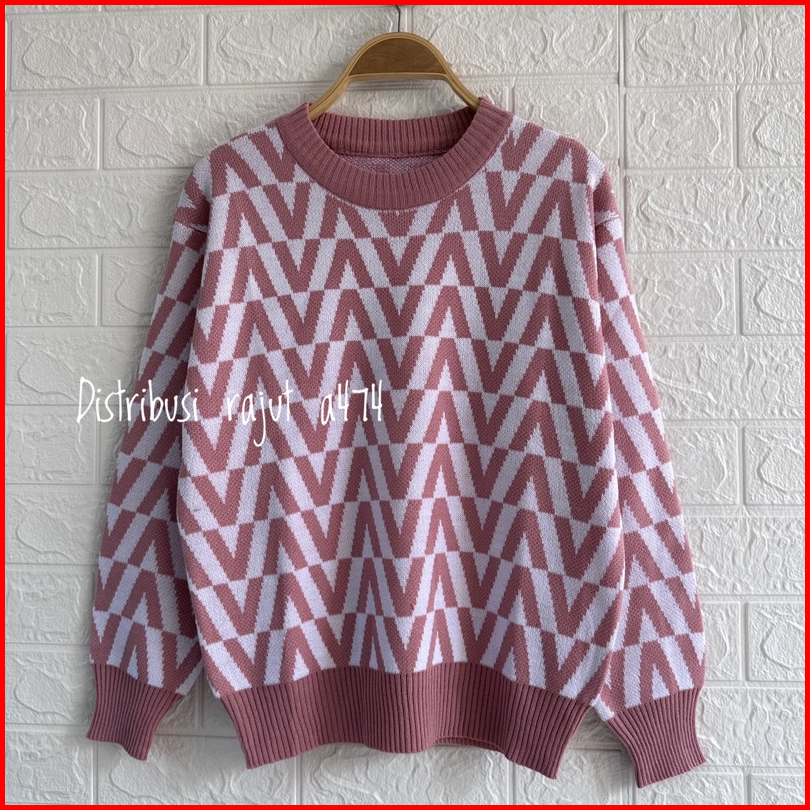 Givane Sweater Rajut Knist Import Motif V Atasan Wanita