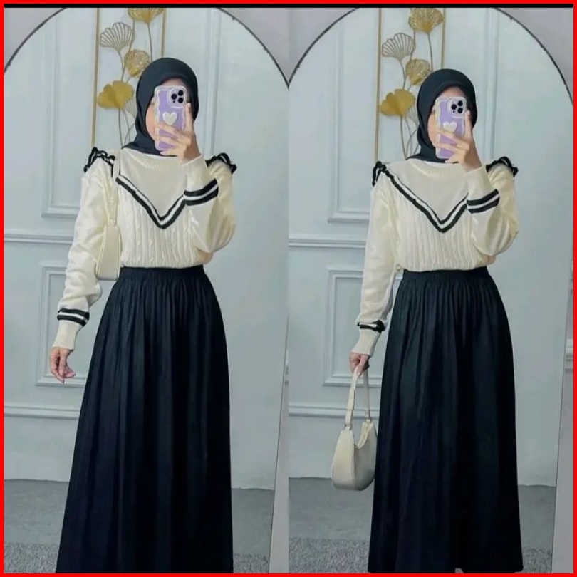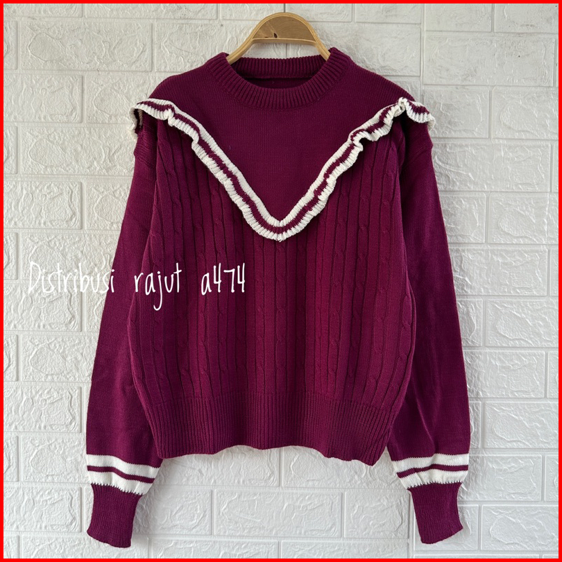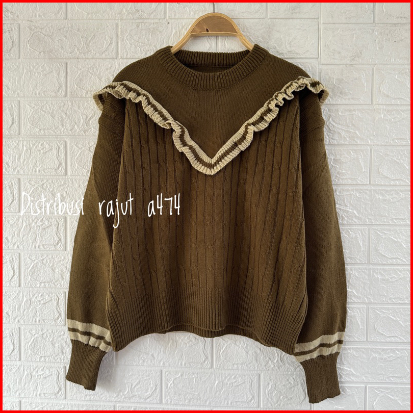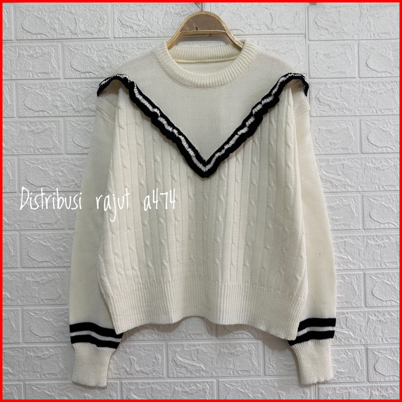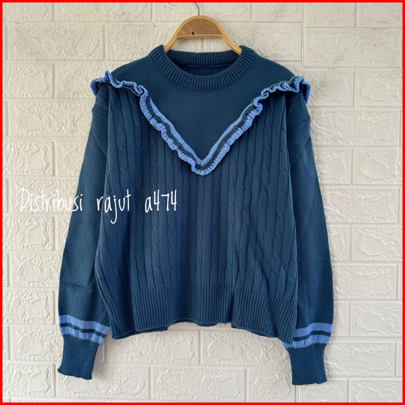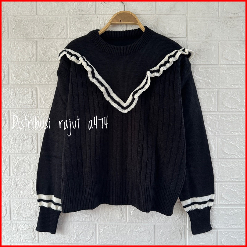 Saira Sweater Rajut Renda Motif Cable Stripe Atasan Wanita Lengan Panjang