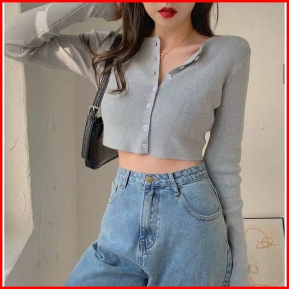 Bailey Crop Rajut Angel Boton Skrit Sweater Rajut Ala Korean