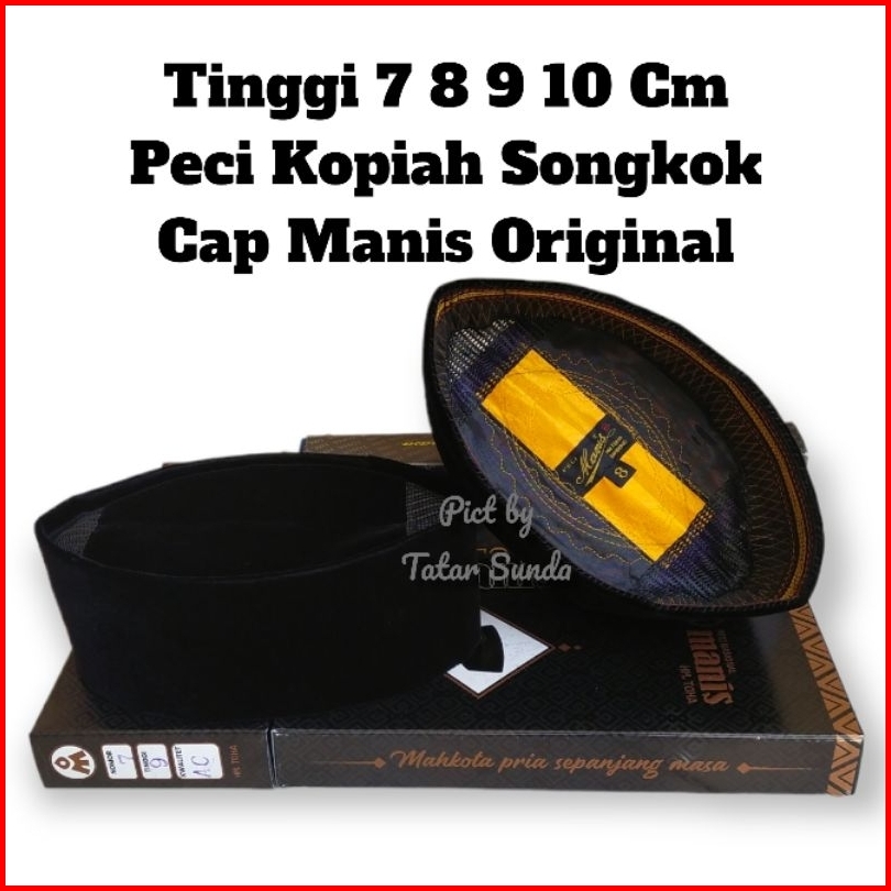 Peci Hitam Cap Manis Ori Tinggi 7 8 9 10 Hm. Toha Set Perlengkapan Sholat Songkok Kopiah Hitam Ac Manis