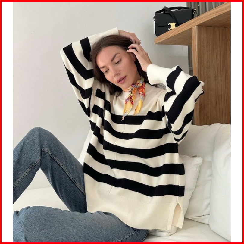 Diara Sweater Rajut Wanita Oversize Atasan Blouse Jumbo Motif Stripe