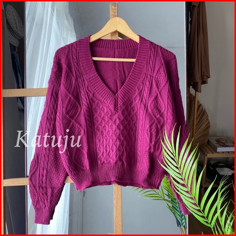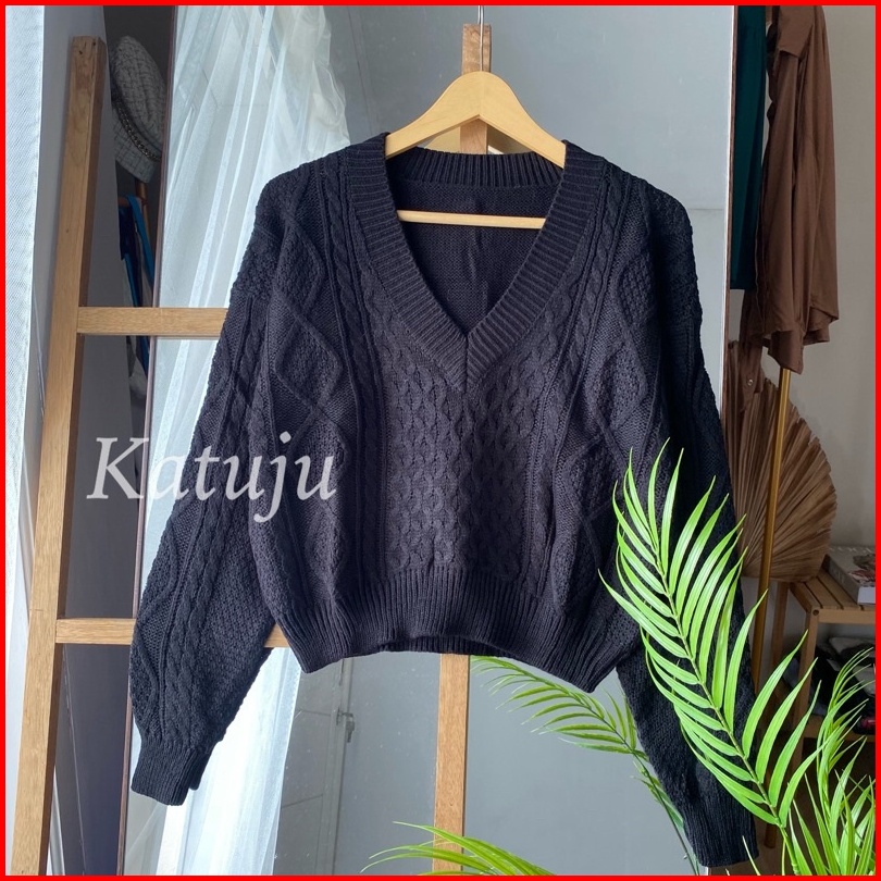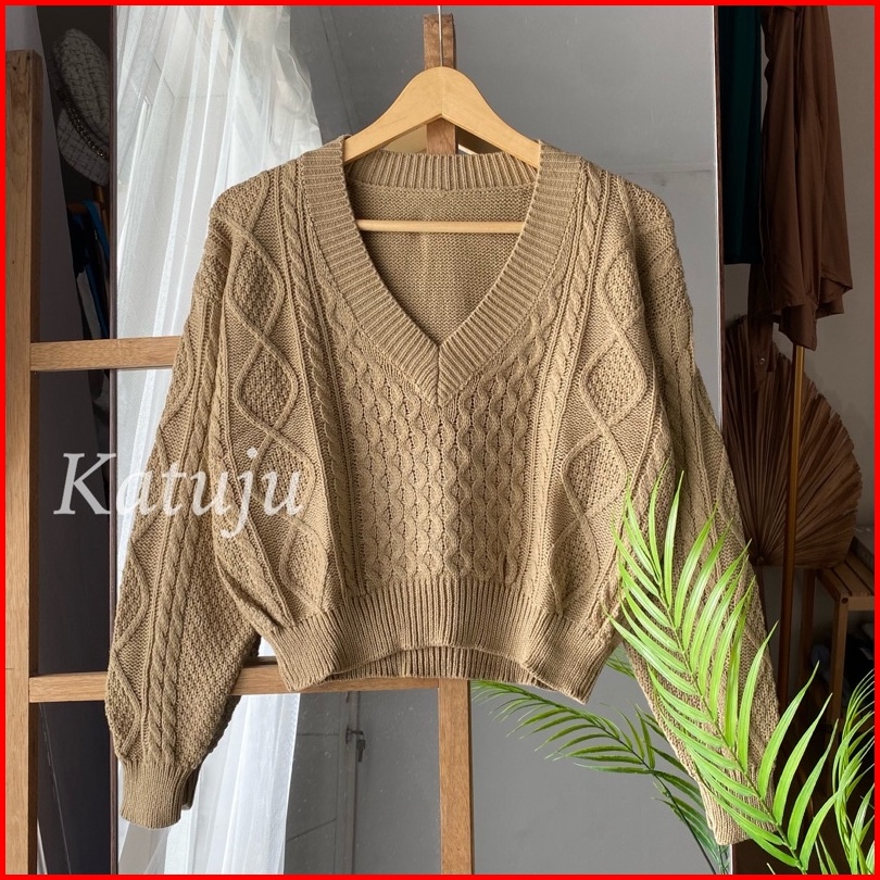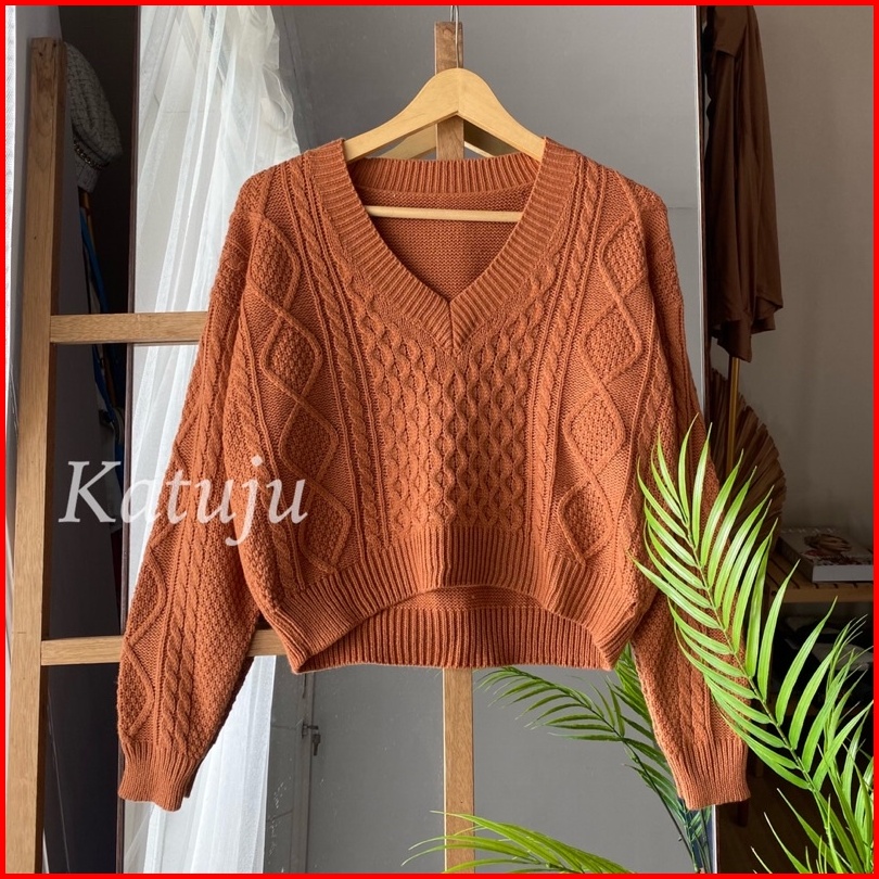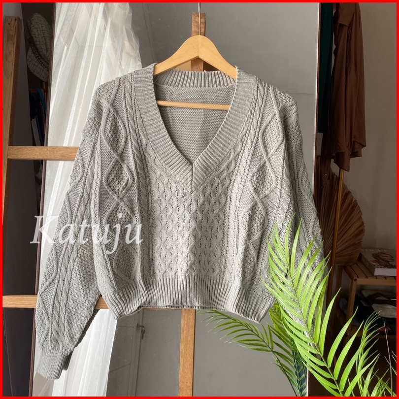 Sweater Rajut Ion Crop Motif Cable Premium Quality Gate 3