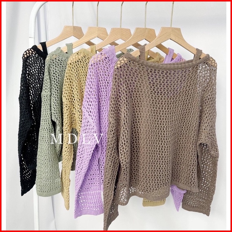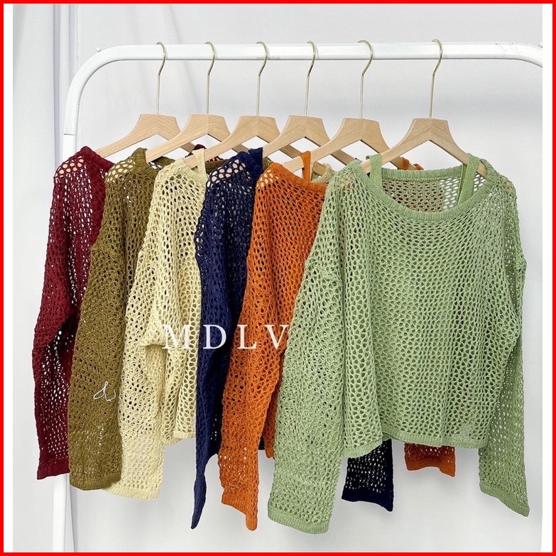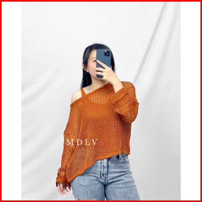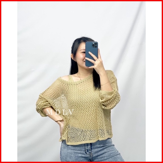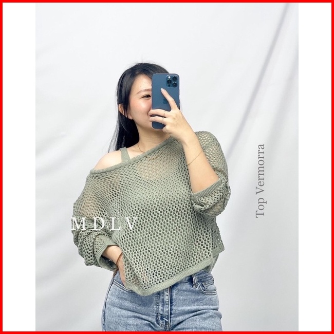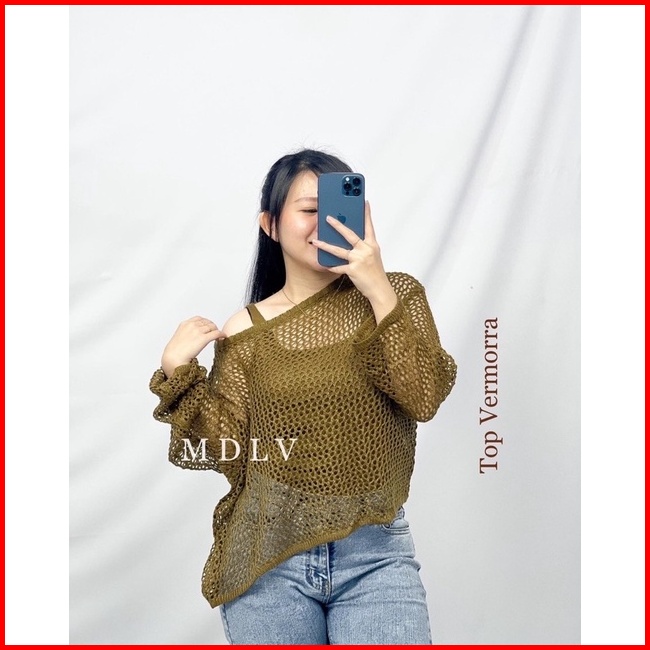 Mdlv Top Vermorra Rajut Atasan Rajut 2in1 Atasan Rajut Jaring Blouse Cewek Fashion Wanita