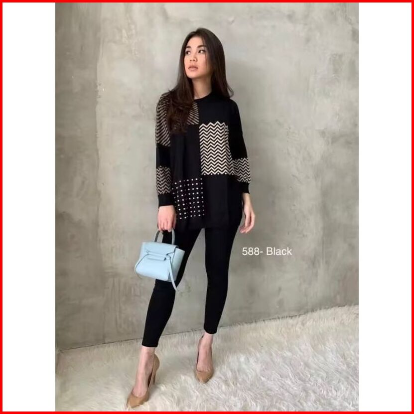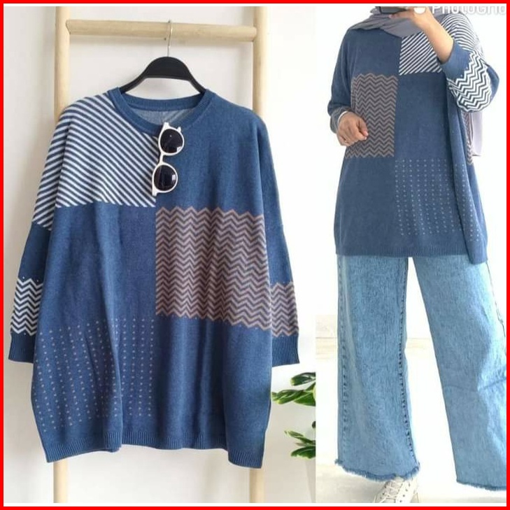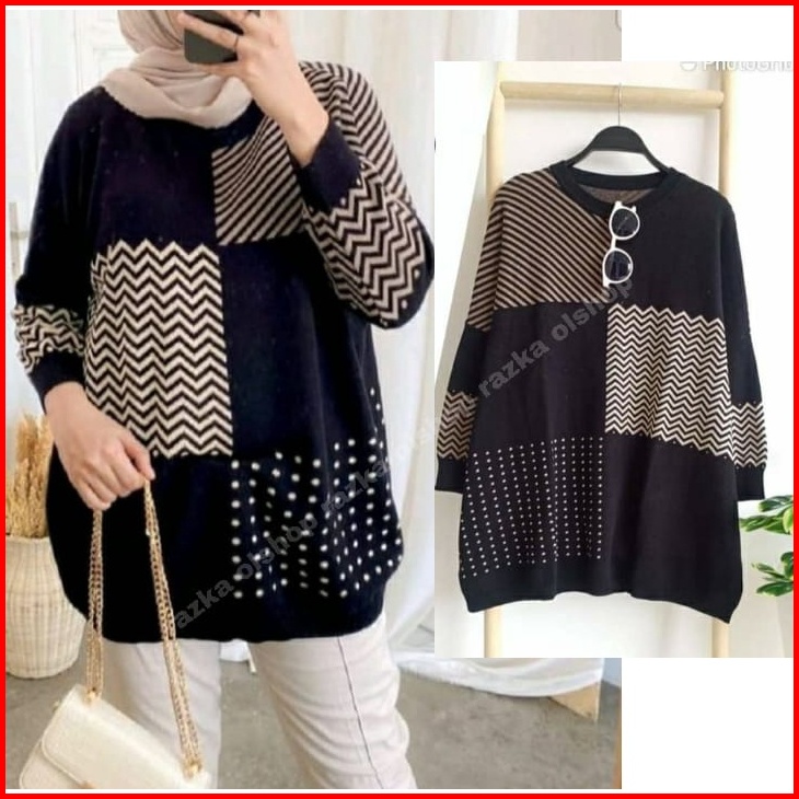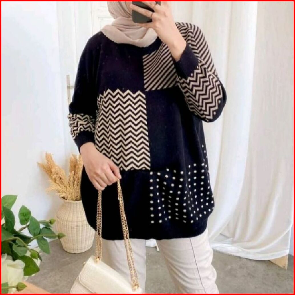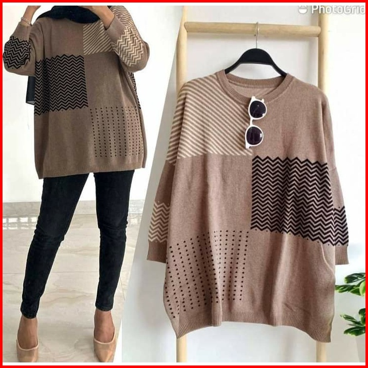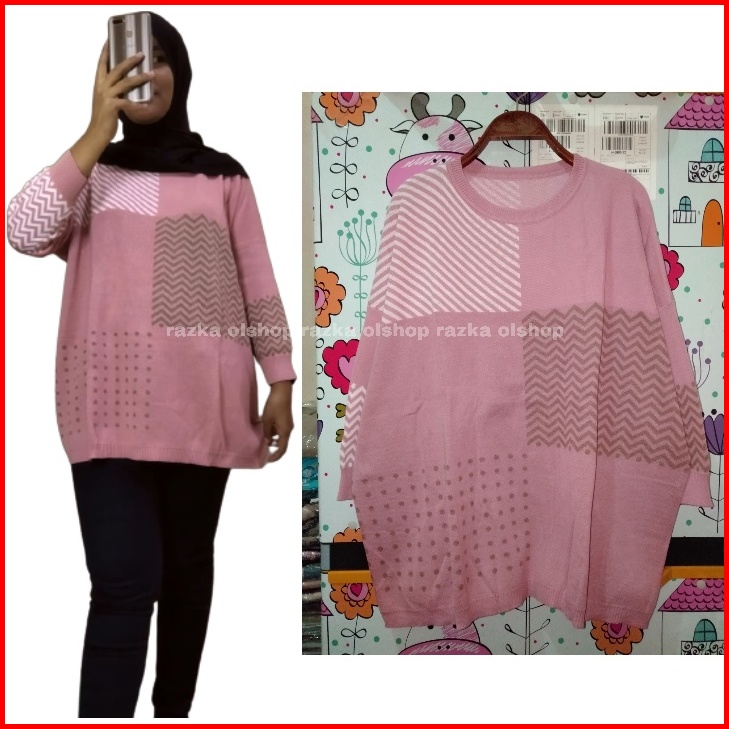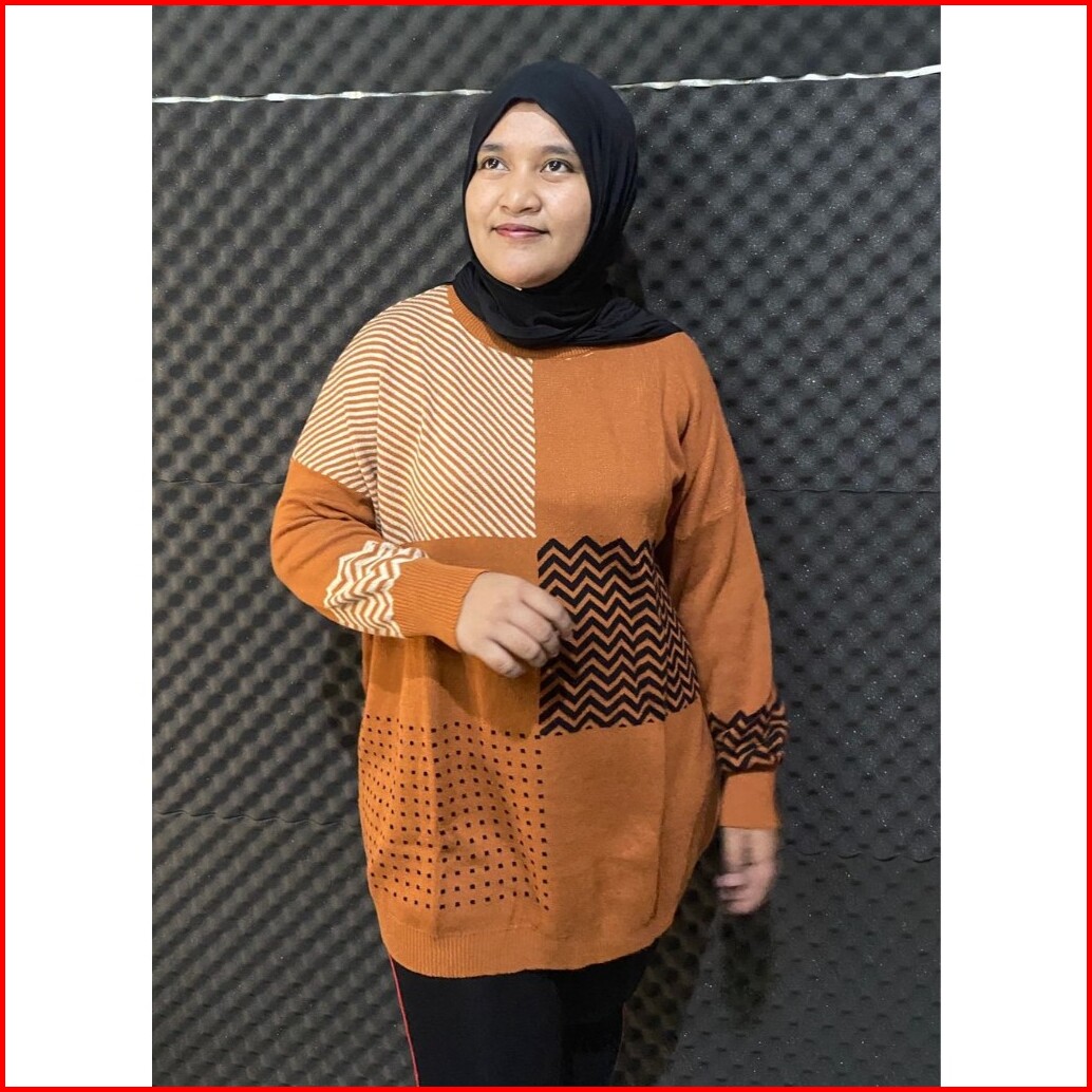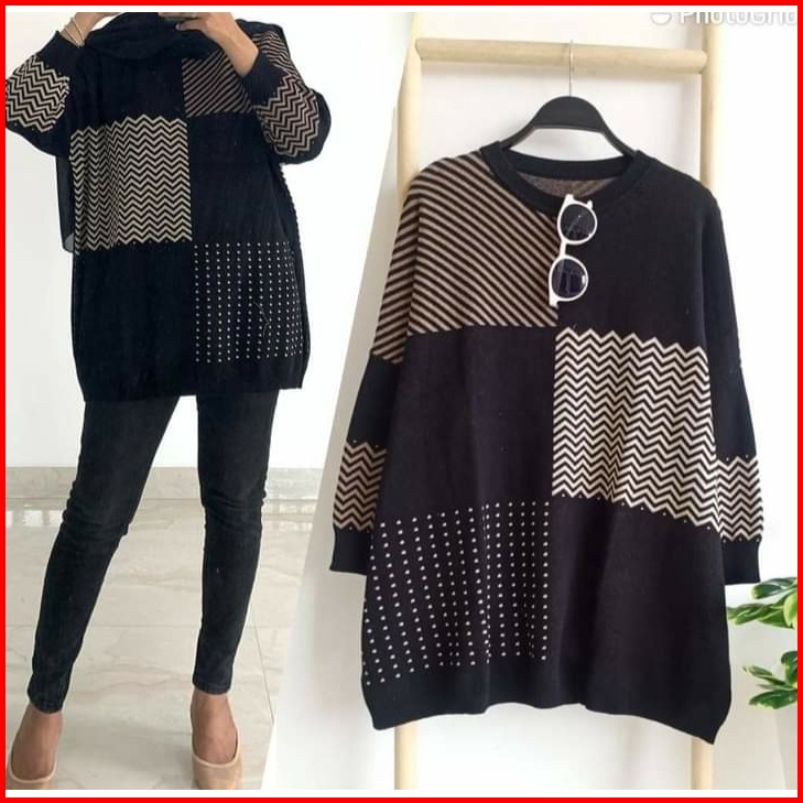 Atasan Rajut Import Jumbo Big Size Xxxxl Motif Kombinasi Zigzag Salur Bintik Polkadot