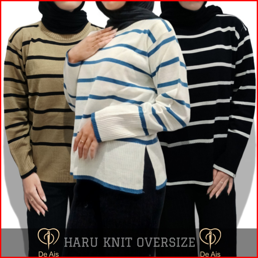 Sweater Rajut Wanita Premium Haru Stripe Knit Oversize