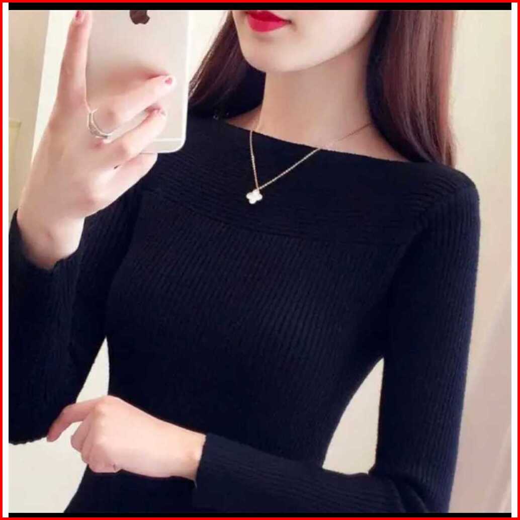 Atasan Sweater Rajut Sabrina Slim Stret Lengan Panjang