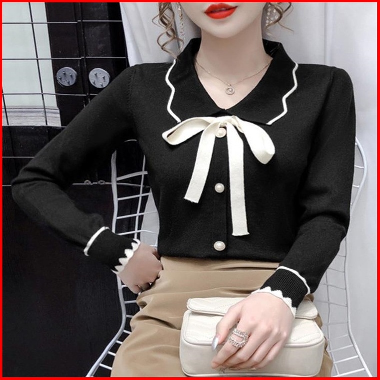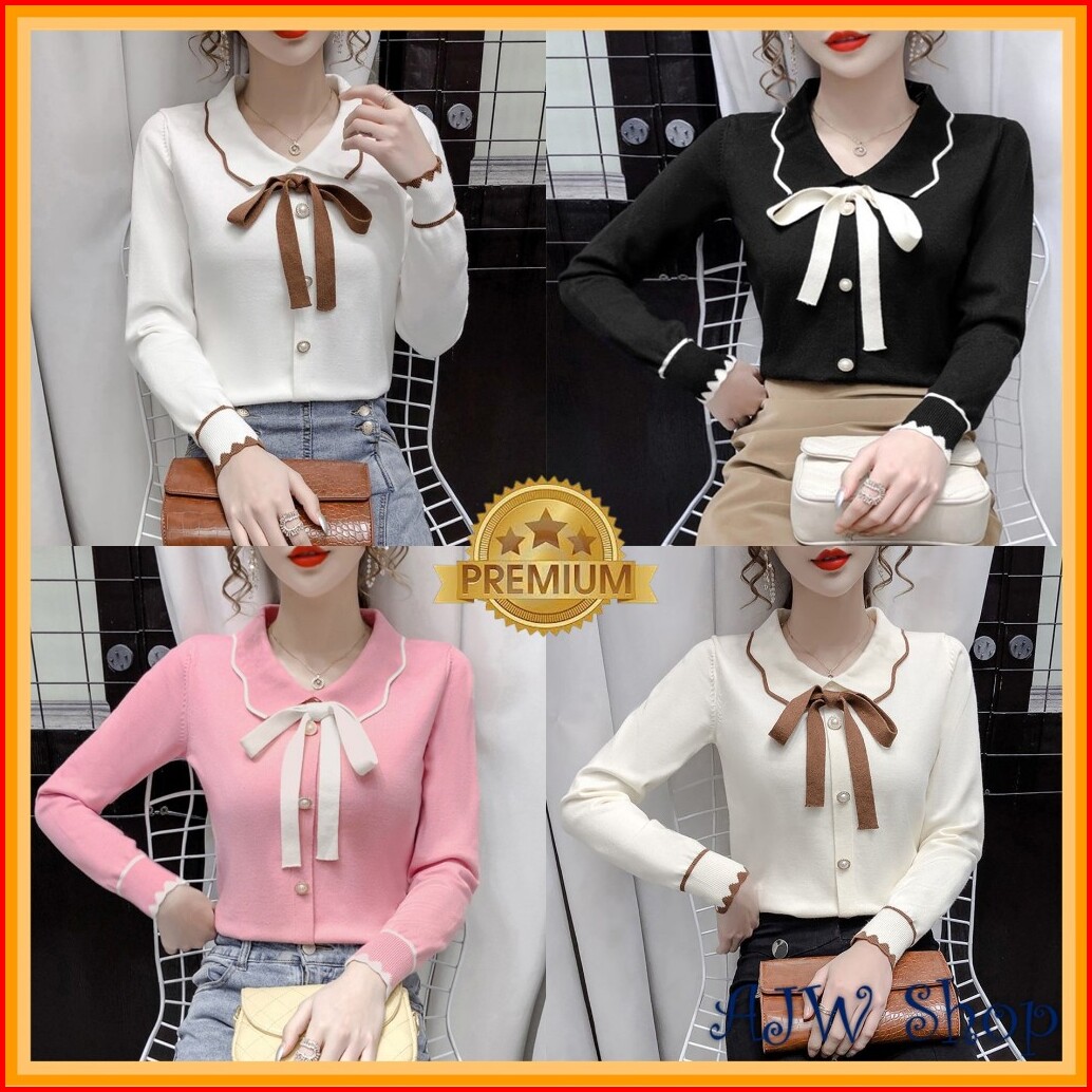 Ajw Blouse Wanita Korea Lengan Panjang Rajut Premium Xz Blouse Korean Style Wanita Rajut Lengan Panjang Premium Blouse K
