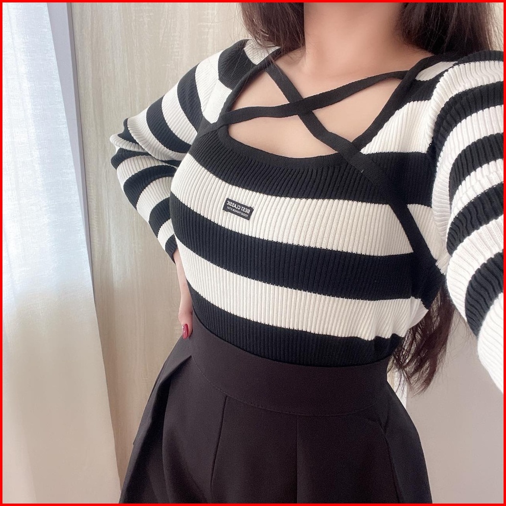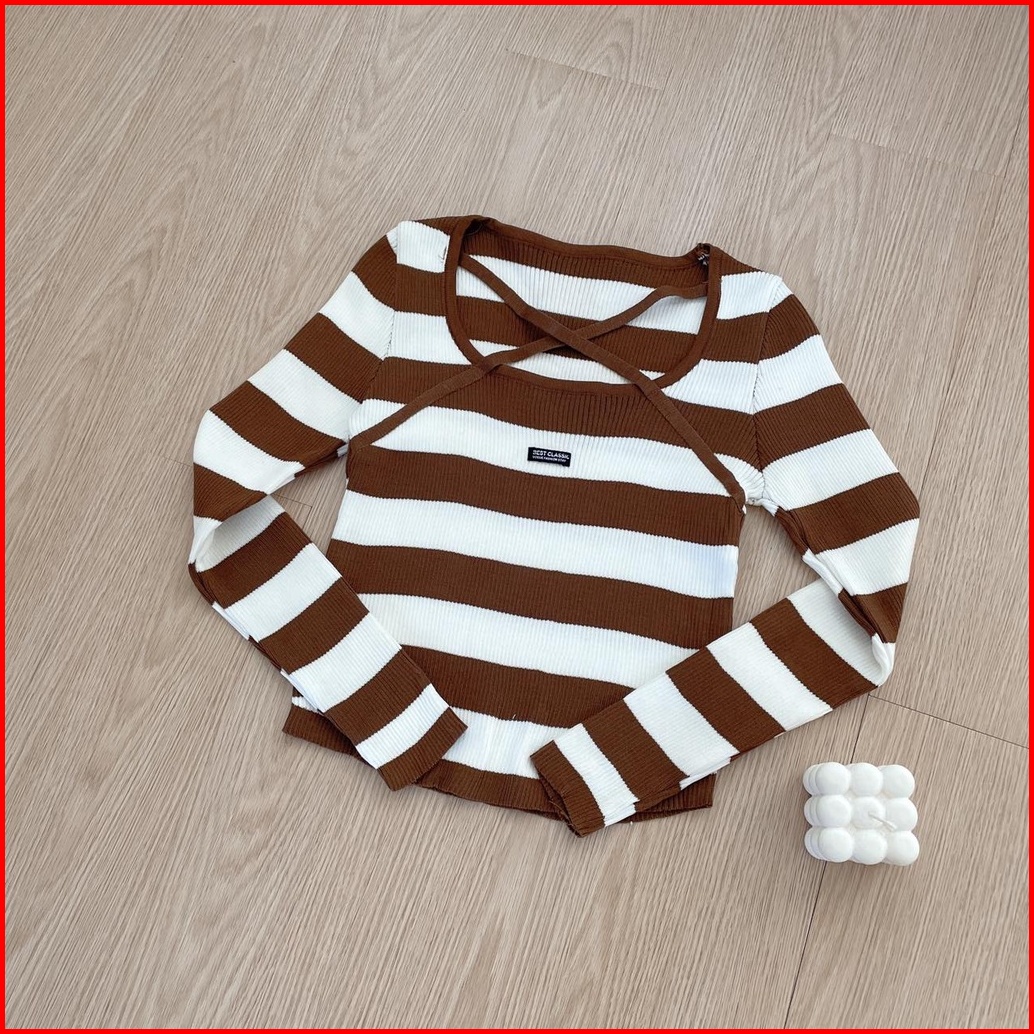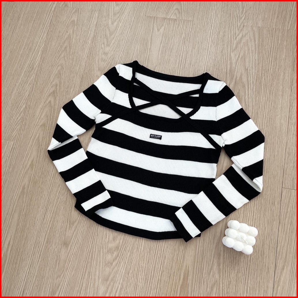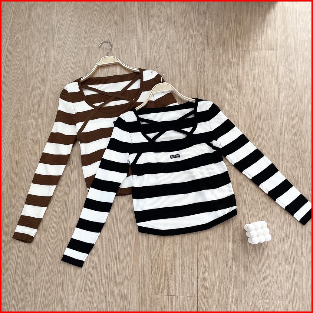 Modamyth Bt001 - Atasan Rajut Lengan Panjang Wanita Import Korean Style Top Rajut Stripes Knit
