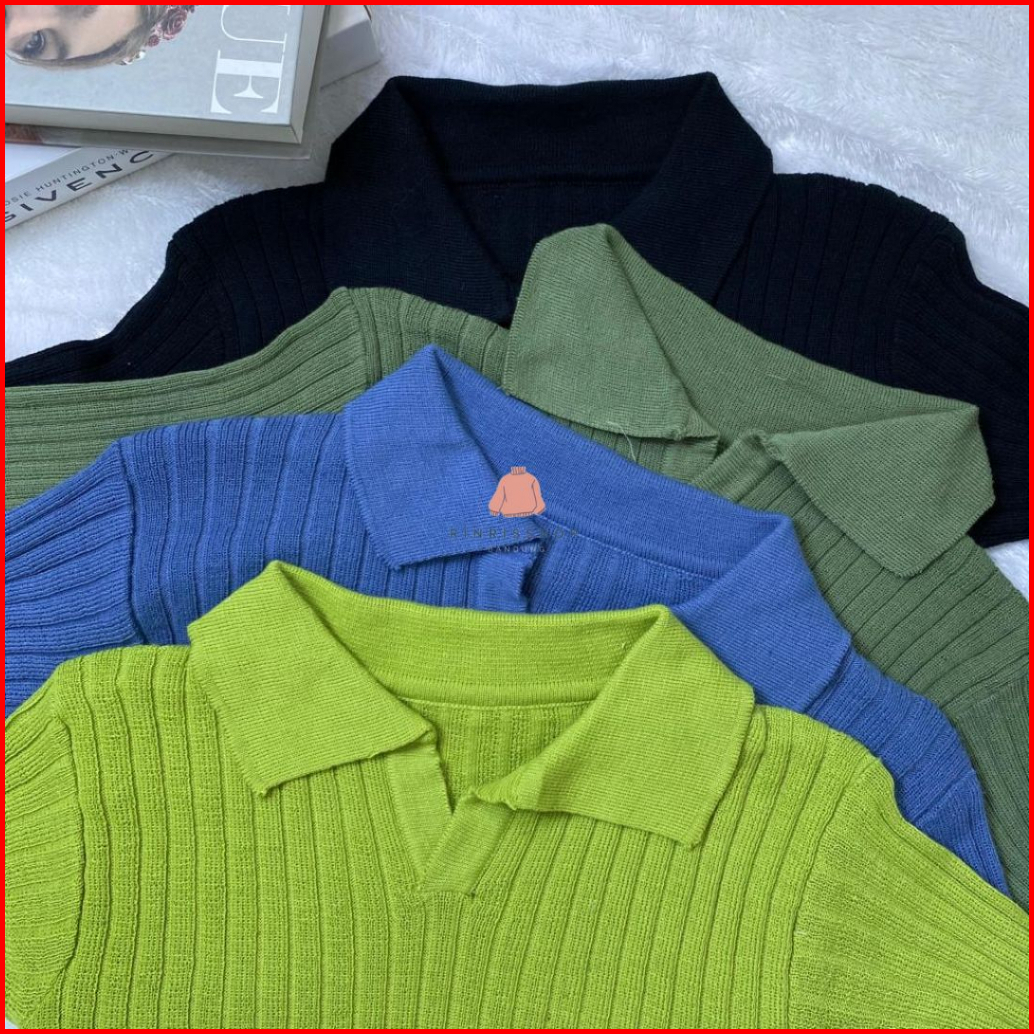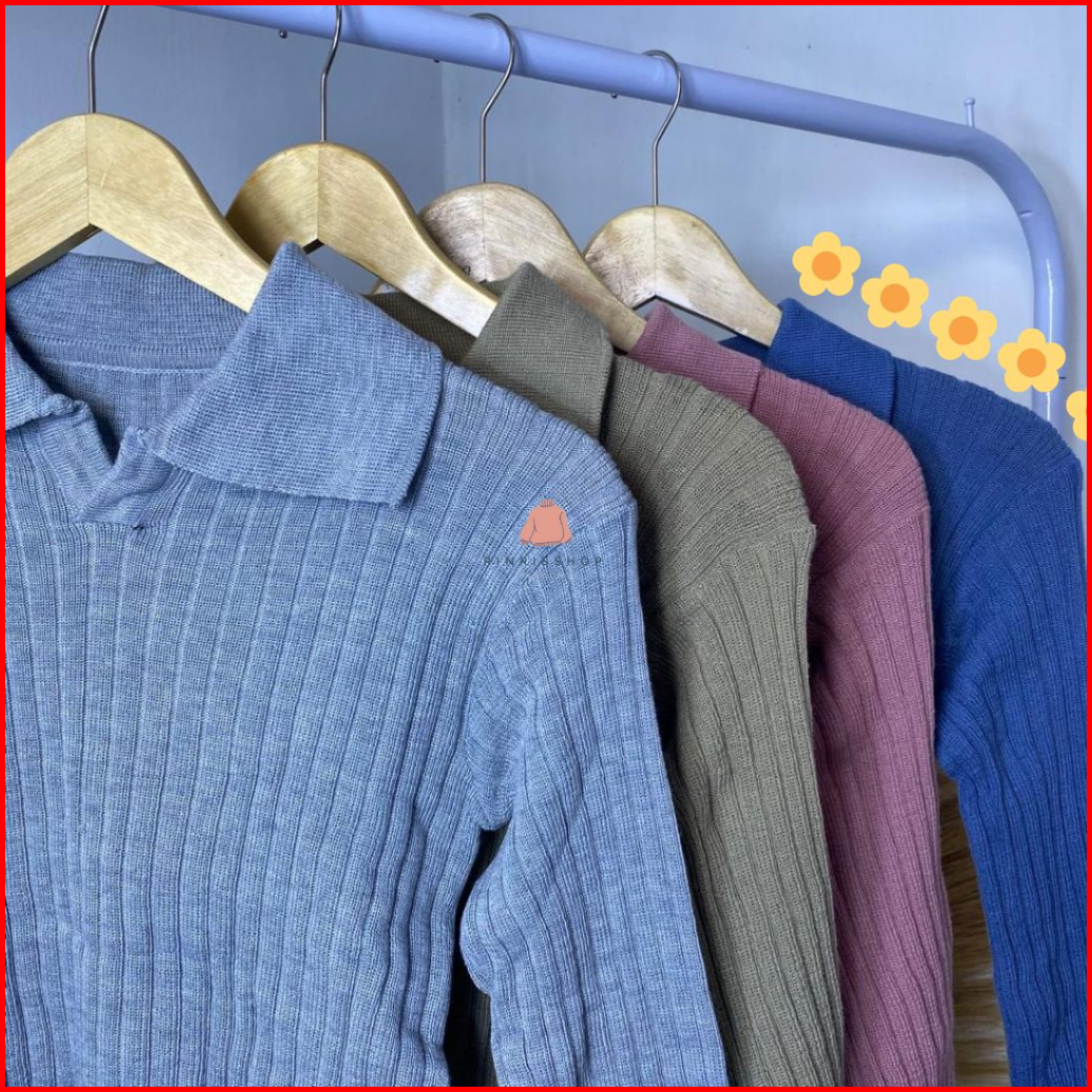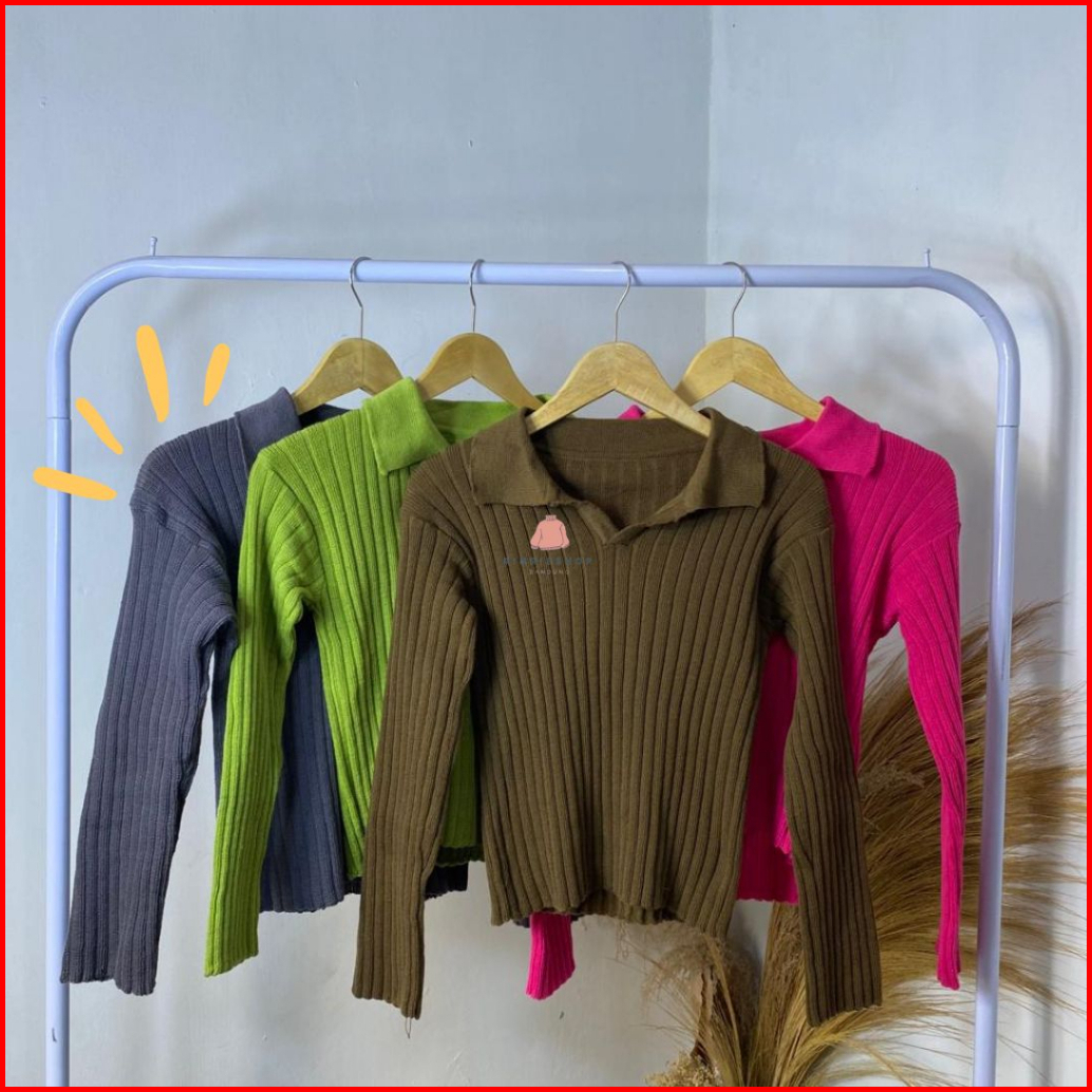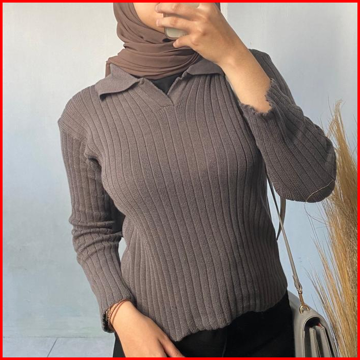 Alena Long Sleeve Shirt Polo Atasan Wanita Atasan Rajut Atasan Polo