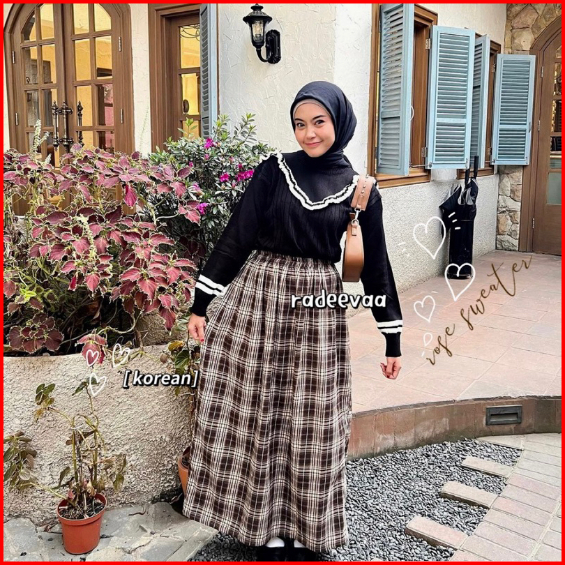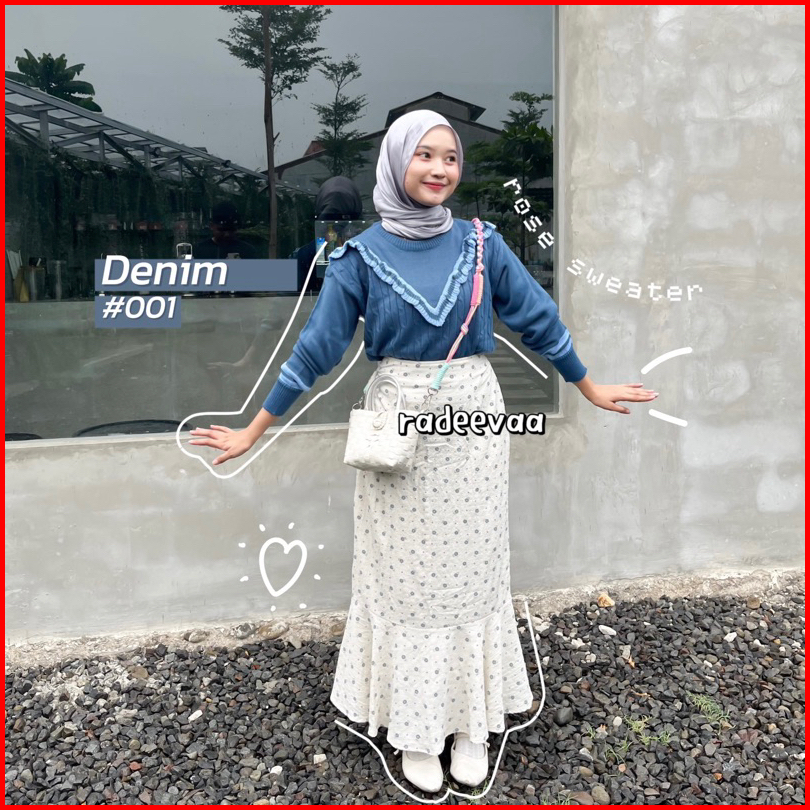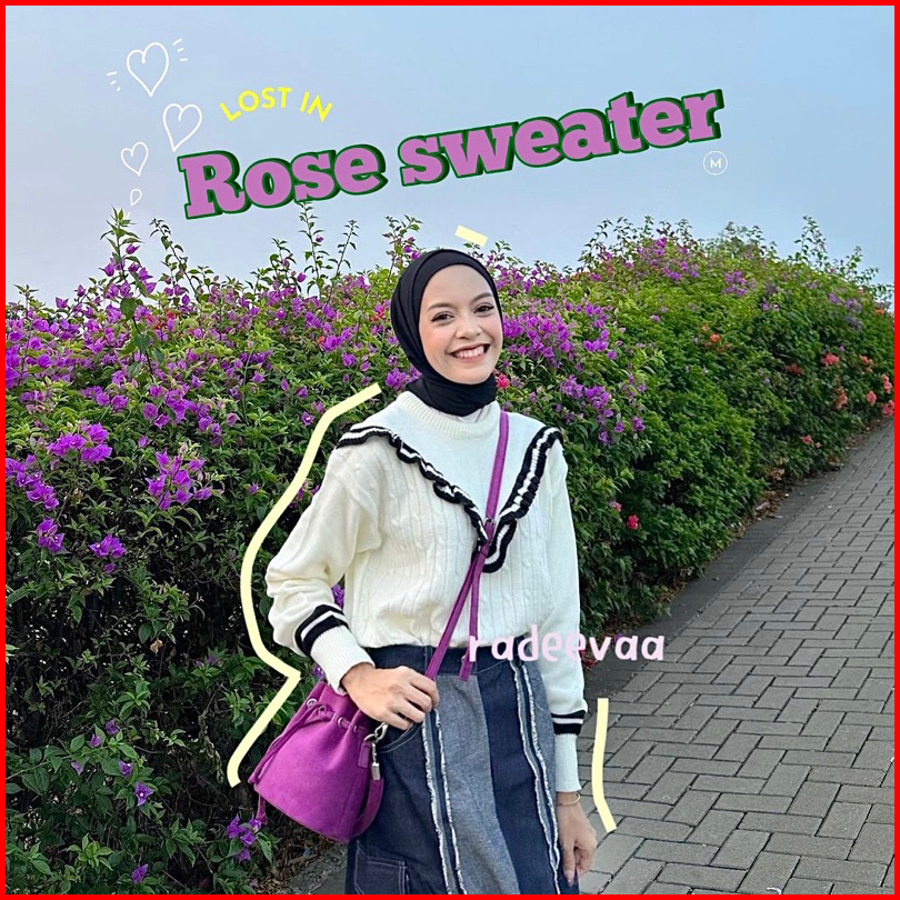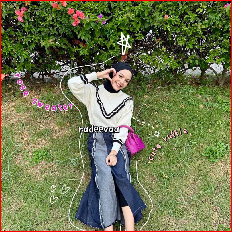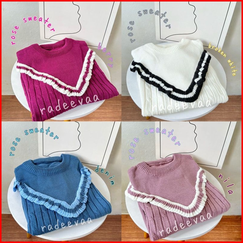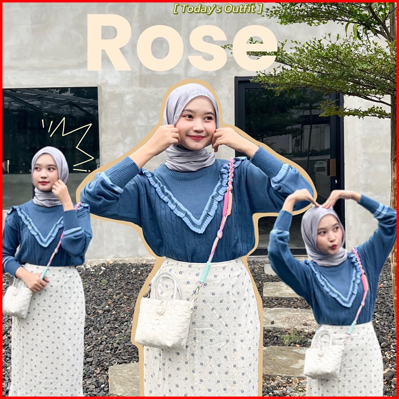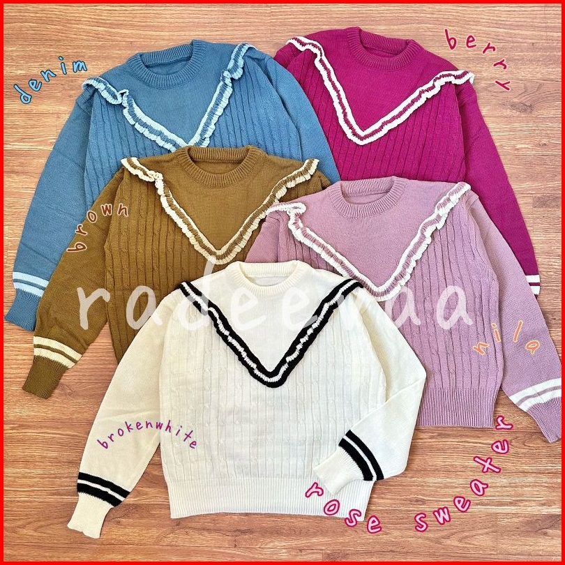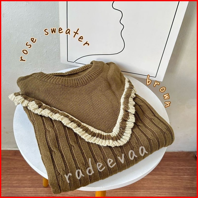Sweater Knit Rose Ruffle Cable Korean Style Atasan Blouse Rajut Wanita Korea