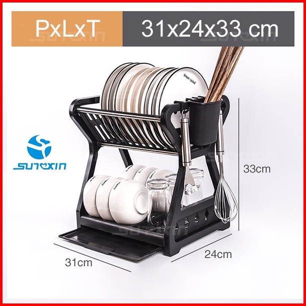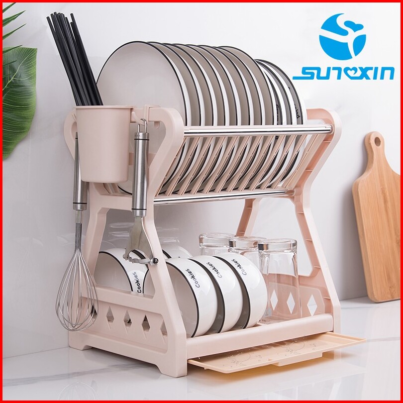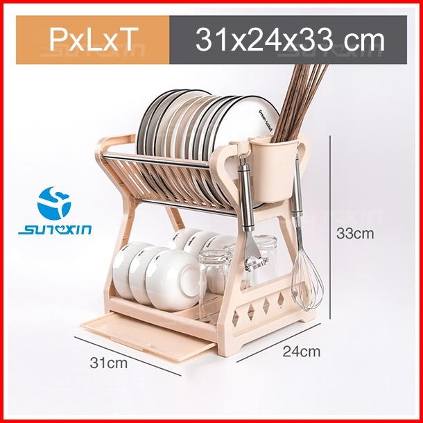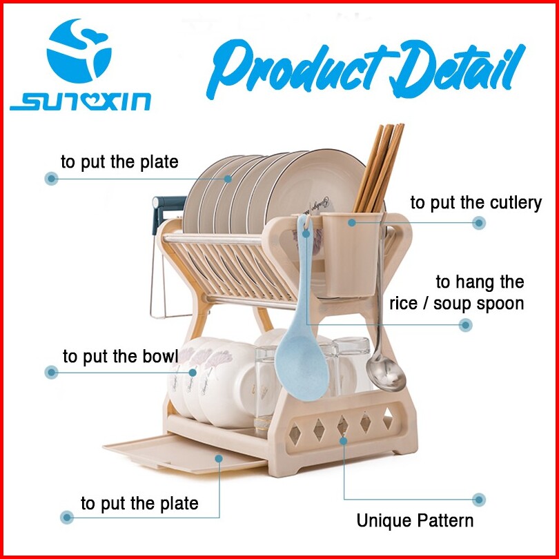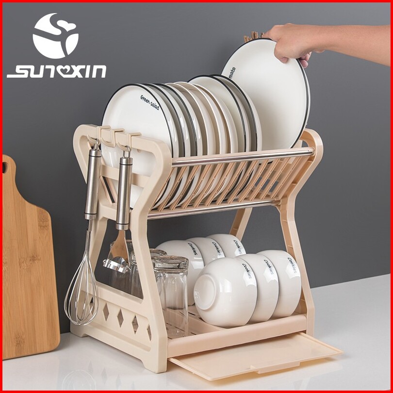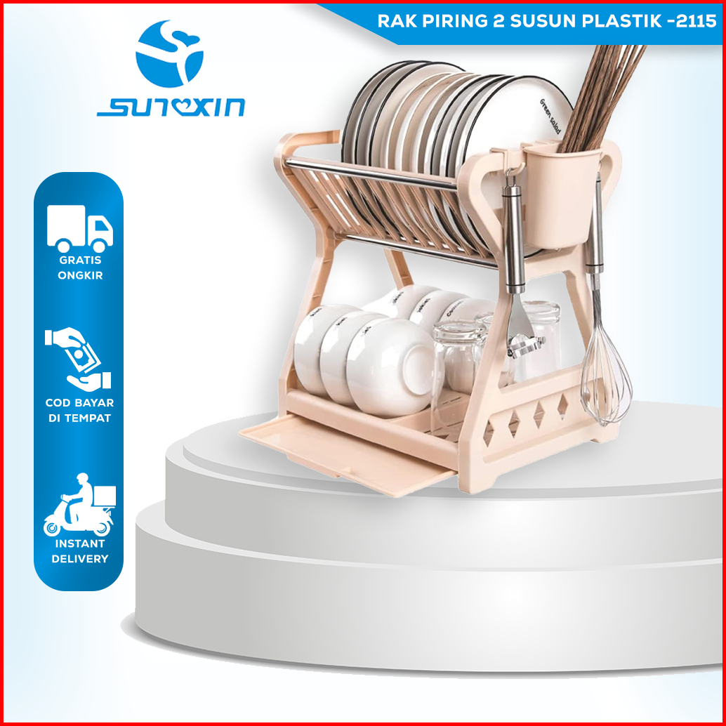 Sunxin - Rak Piring 2 Susun Plastik -2115 Rak Piring Dapur Baskom Rak Pengering Piring