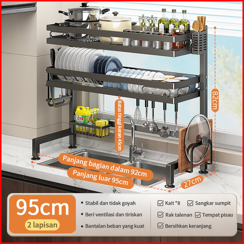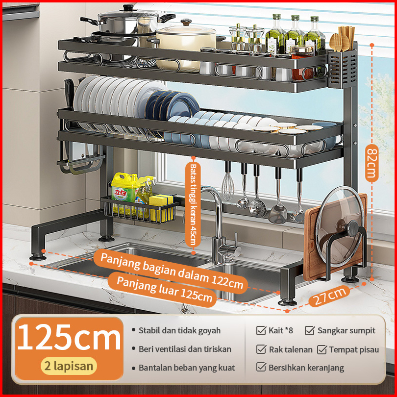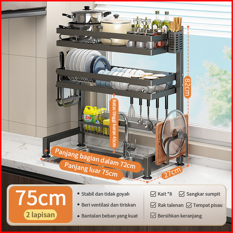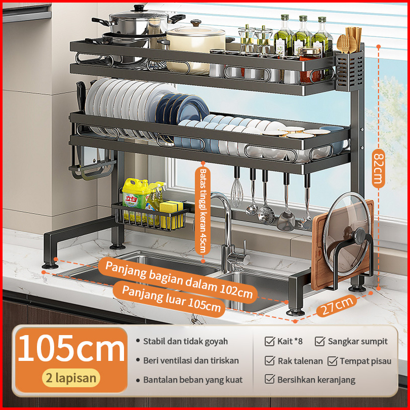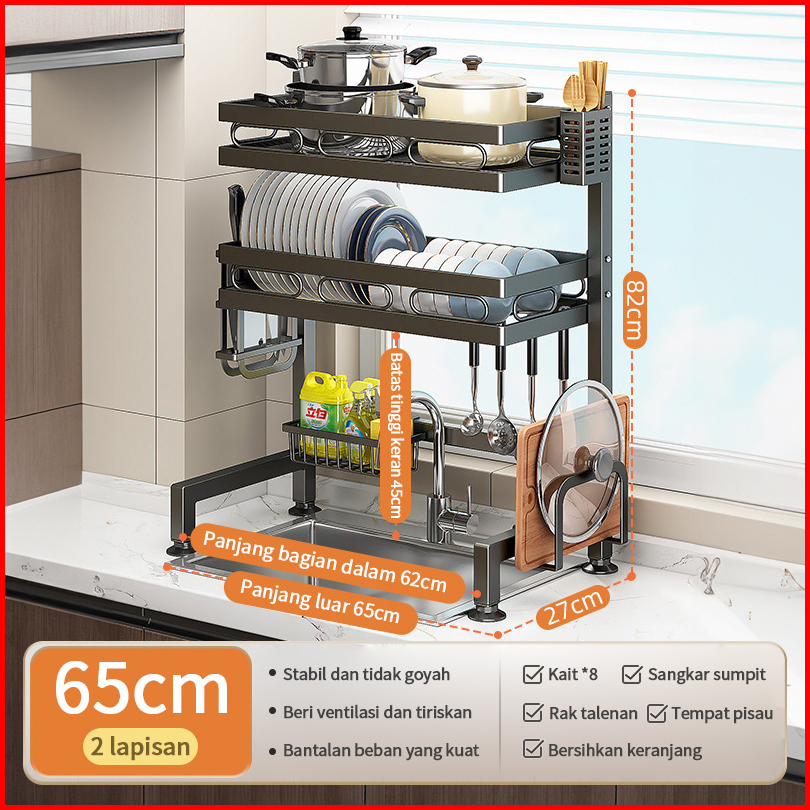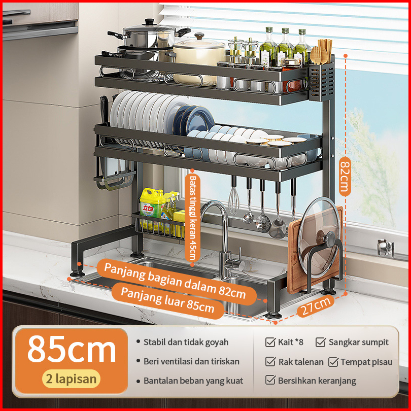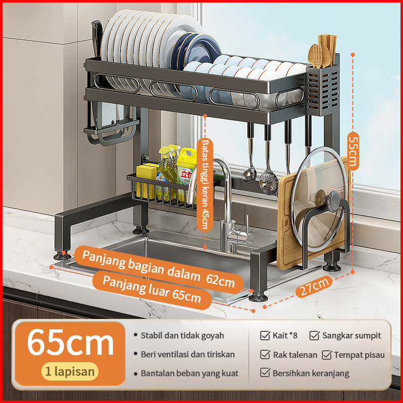 Rak Wastafel Dapur Multi-fungsi Rak Piring Rak Penyimpanan Rak Pembuangan