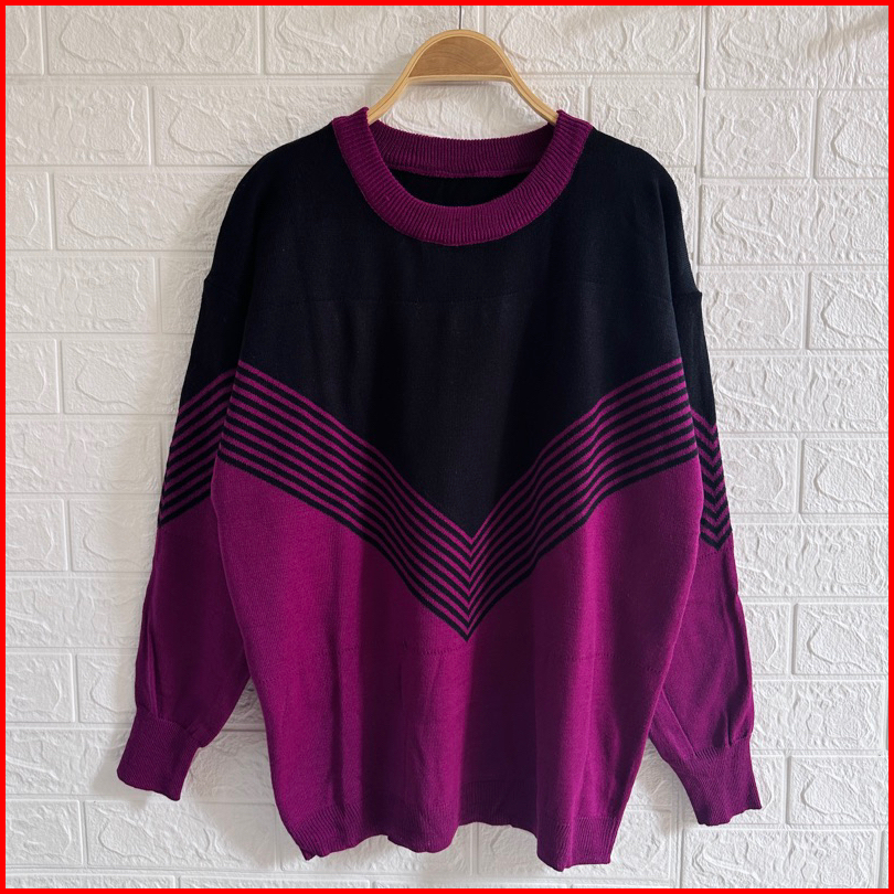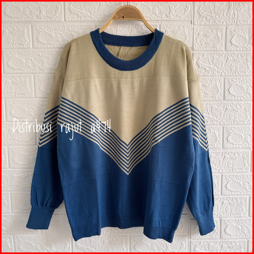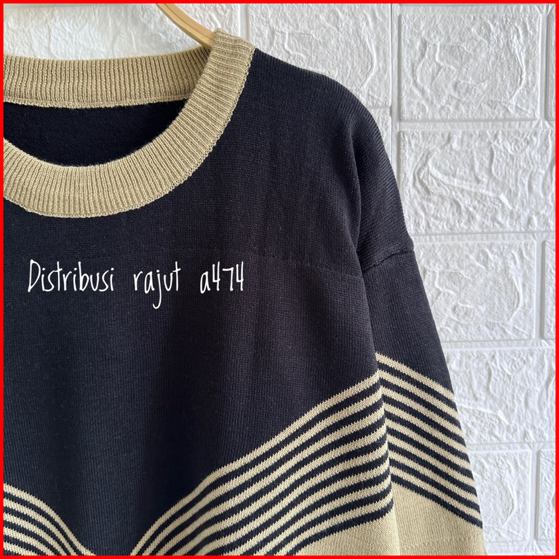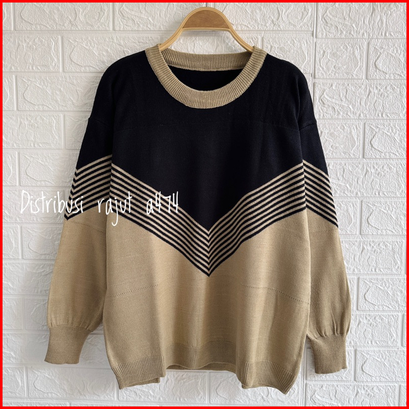 Vinny Oversize Top Sweater Rajut Big Size Wanita Motif Polos Garis Garis