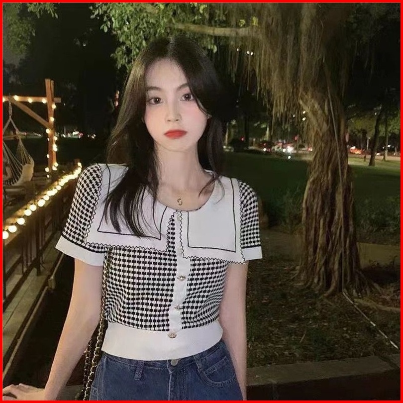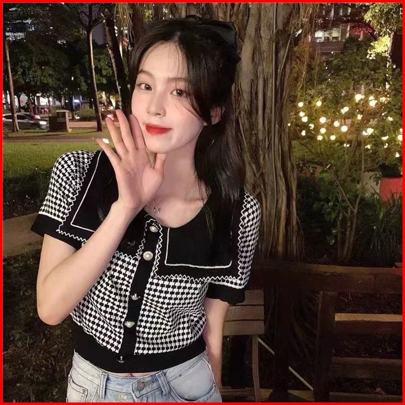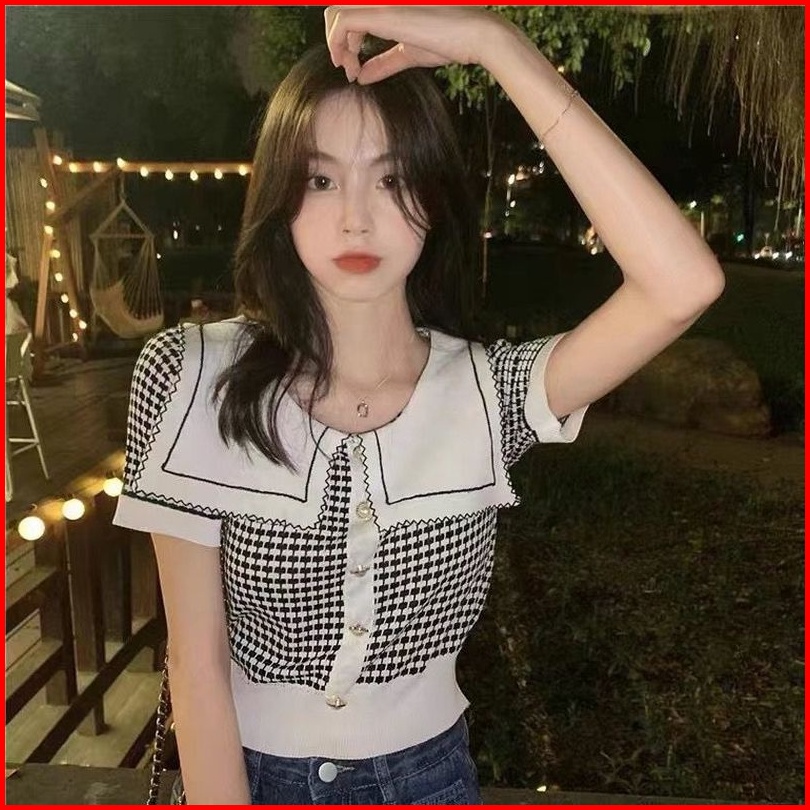 Atasan Rajut Lengan Pendek Longgar Gaya Korea Musim Panas Wanita Cocok Untuk Semua