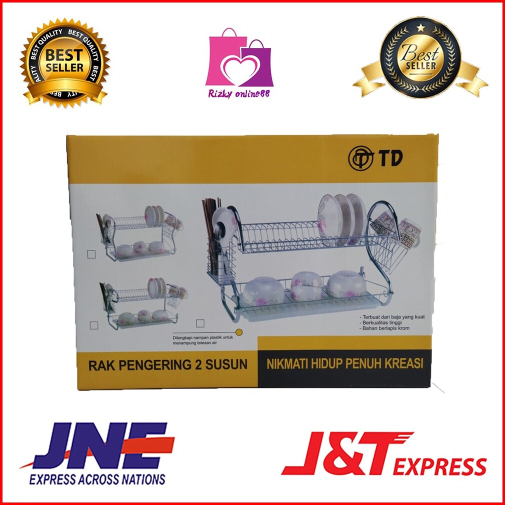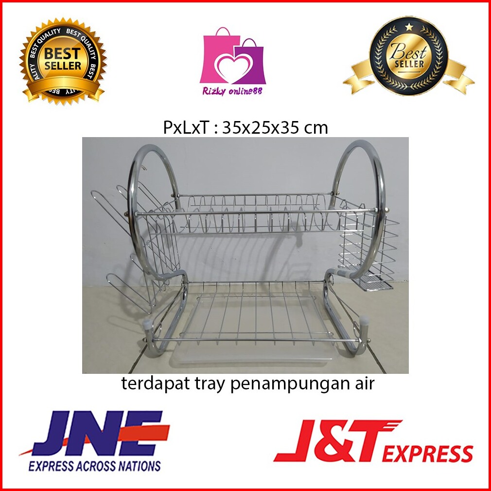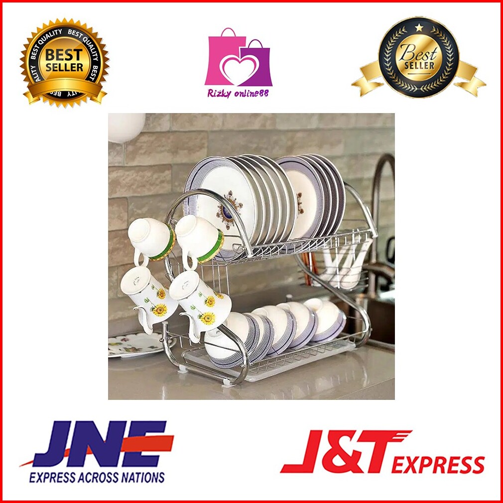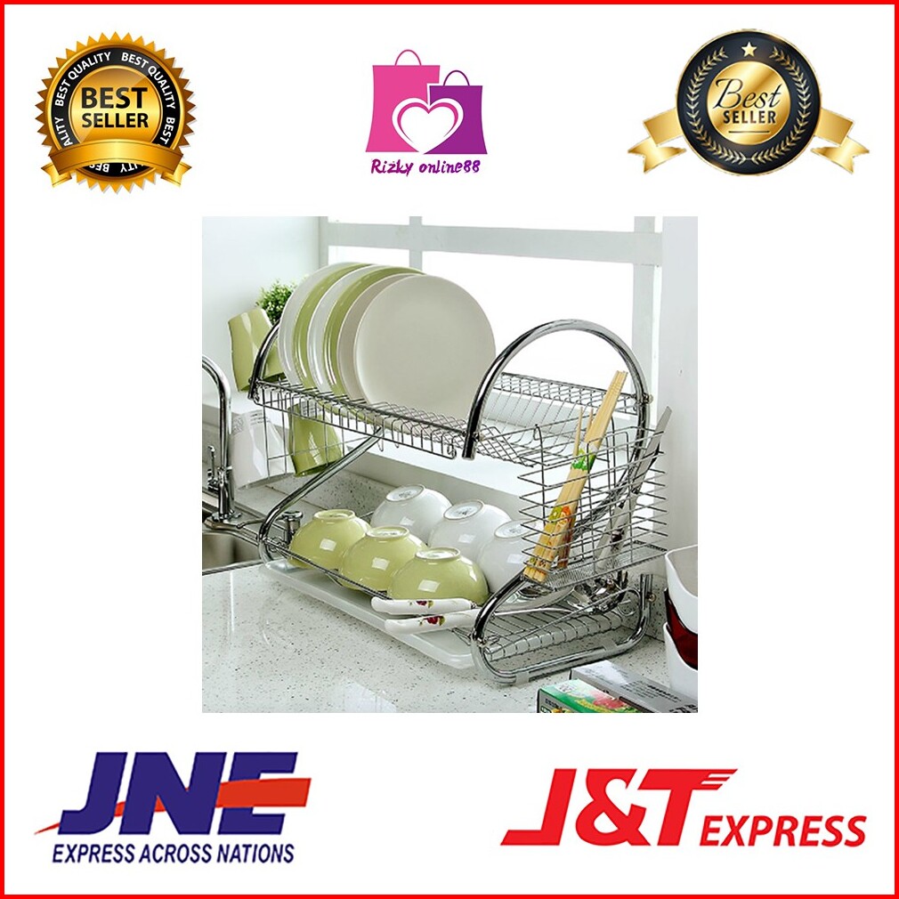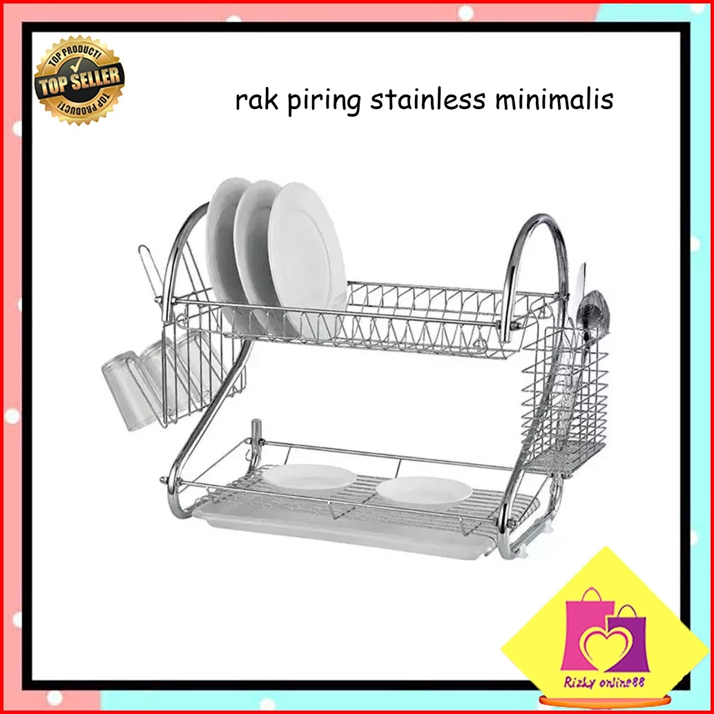 Rizkyonline88 Rak Piring Stainless 2 Susun Minimalis Baja Kuat