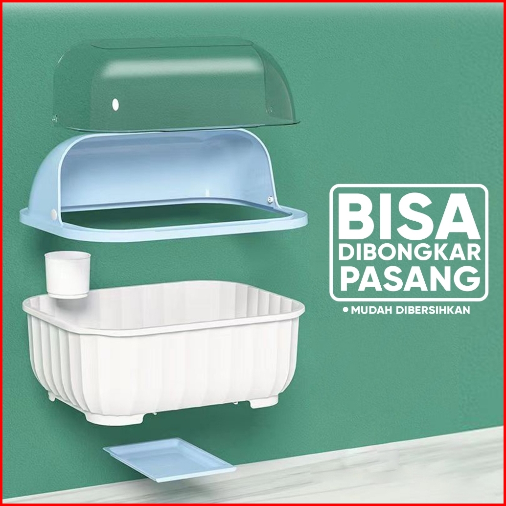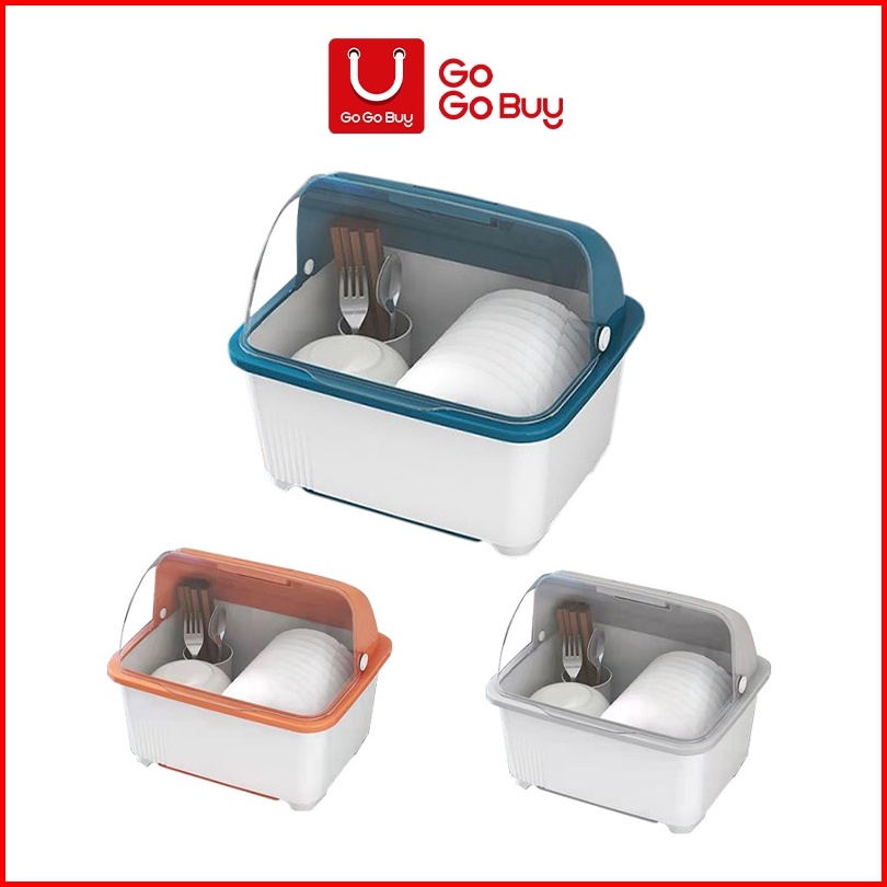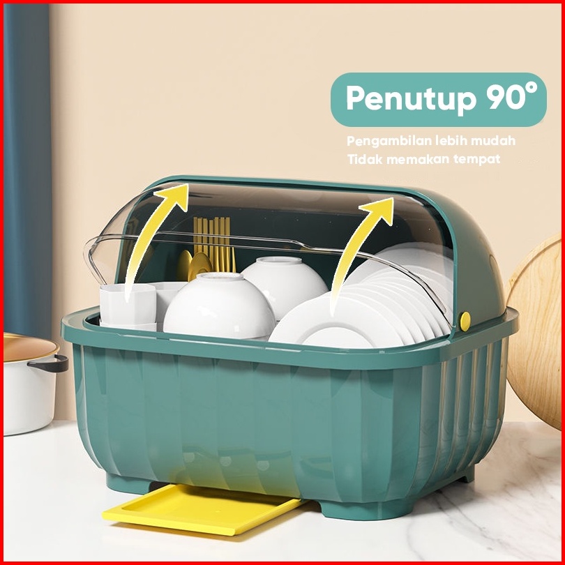 Gogobuy Rak Piring Plastik Tertutup C47 Tempat Penyimpanan Alat Makan Rak Pengering Mangkok Sendok Rak Dapur Tempat Piri