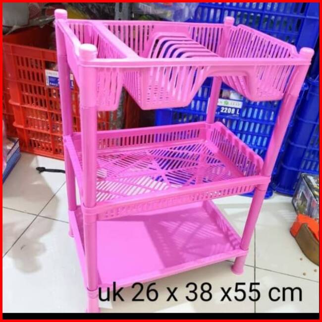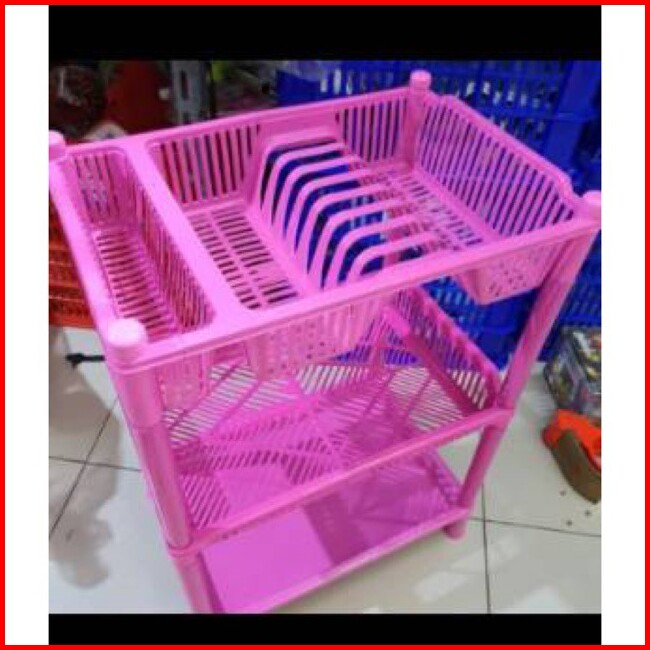 Rak Piring Plastik 3 Susun Wadah Air New Super Termurah Warna Acak
