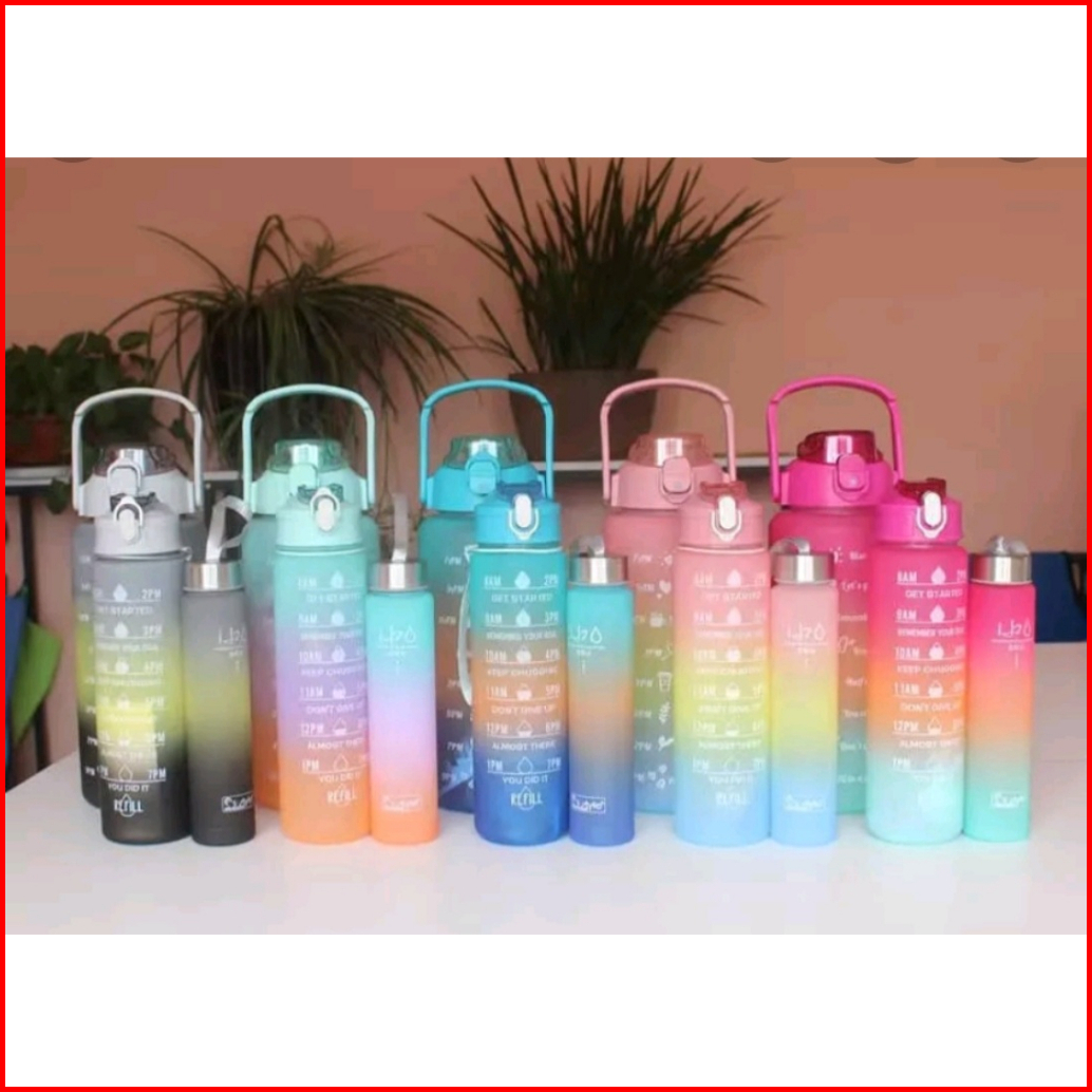 Botol Minum Gradasi Botol Minum Beranak 3in1 Penanda Waktu Kapasitas Besar 3 Buah Set 2 Liter 900ml 300ml
