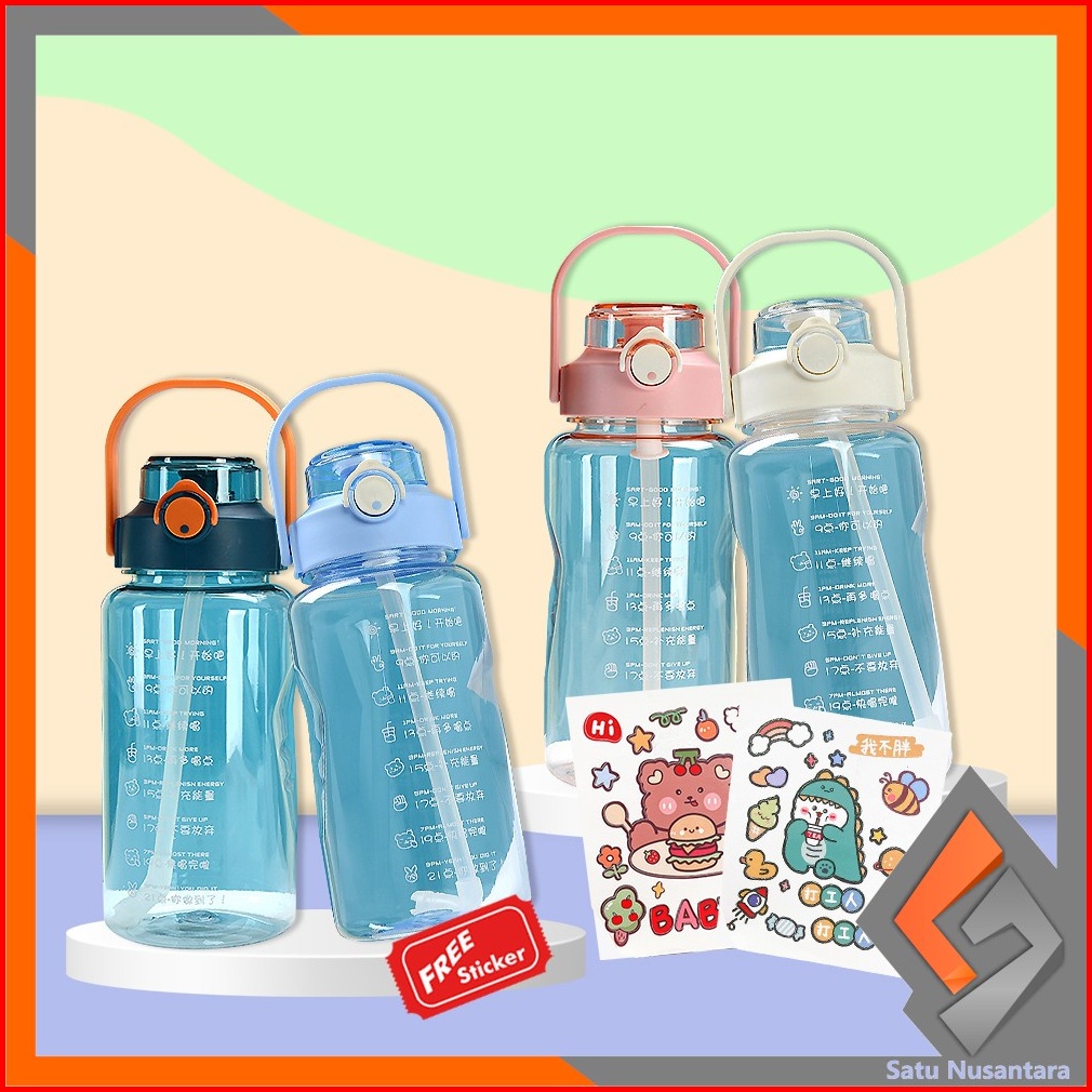 Sn-c304 C305 Botol Minum Motivasi 2 Liter Food Grade Botol Air Minum Jumbo 2000ml Bpa Free Botol Minum Sedotan Dewasa