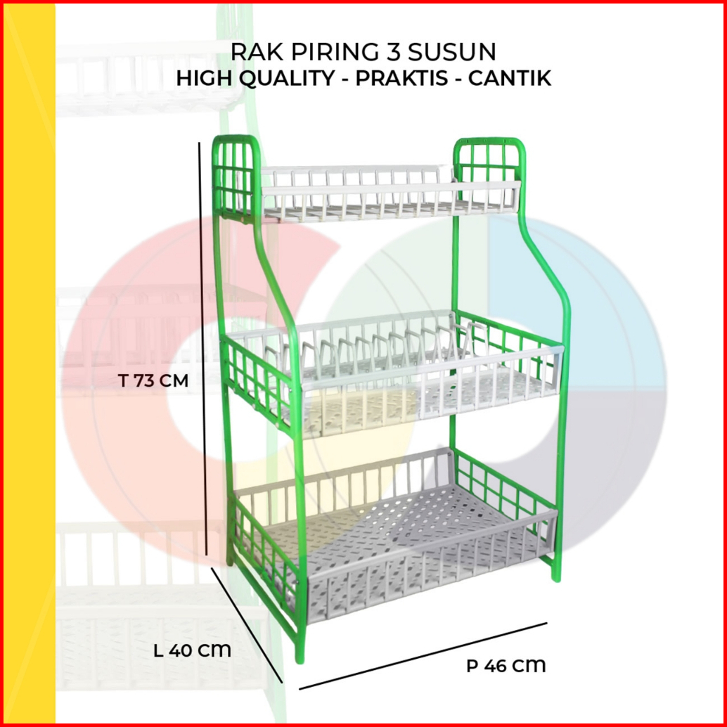 Rak Piring Plastik Susun 3 Warna Cantik Deluxe - Rak Dapur Serbaguna Rak Wastafel Rak Termurah