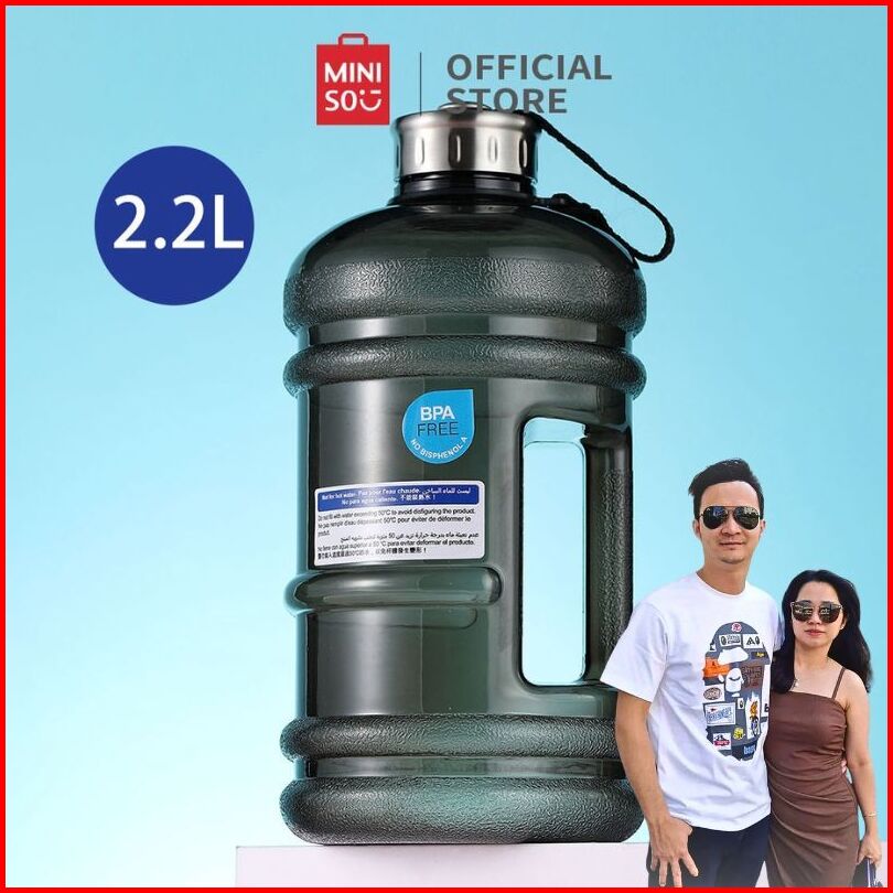 Miniso Botol Minum Plastic 2.2l Kapasitas Super Besar Botol Bpa Free Air Dingin Botol Minum Aesthetic Tumbler Olahraga T