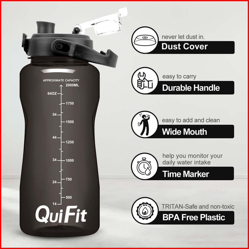Quifit - 2llt Botol Air Minum Tritan Motivasi 2l Tanpa Sedotan Phone Holder 100 Bpa Free