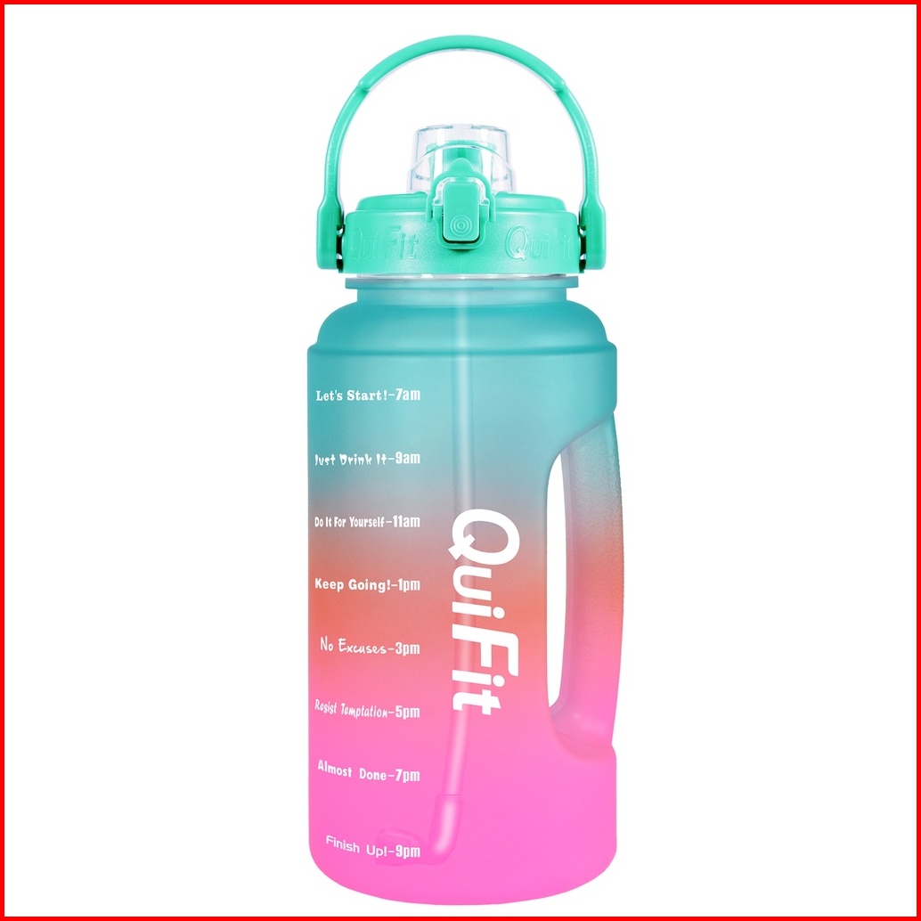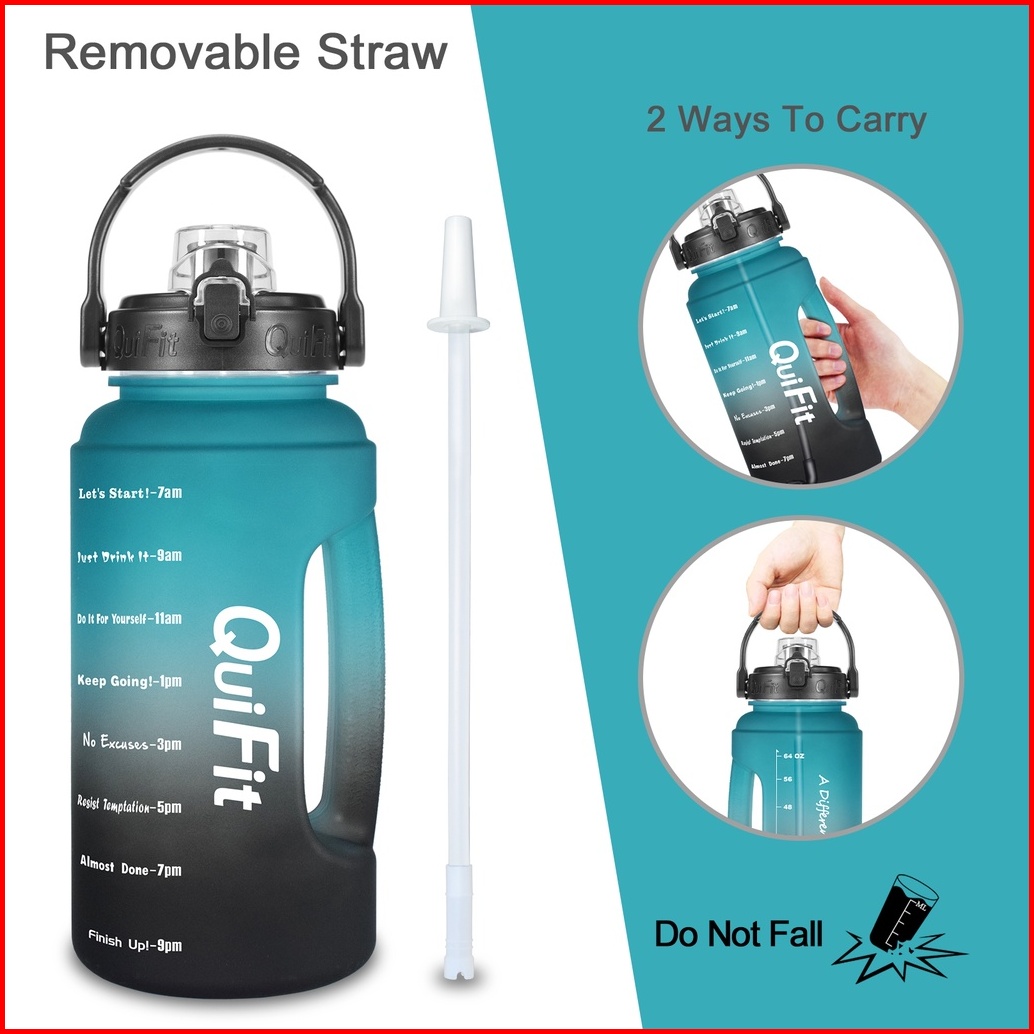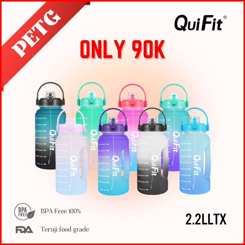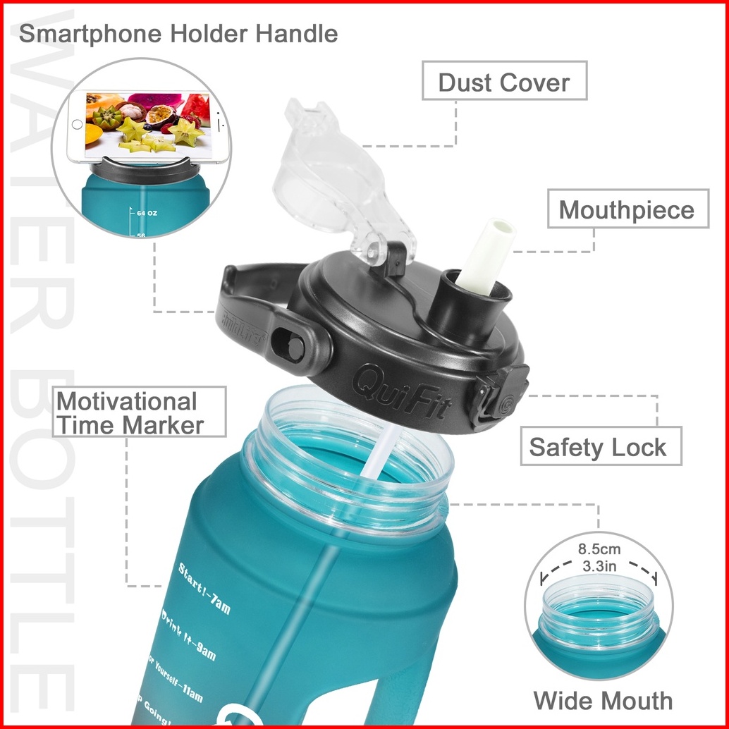 Quifit - 2.2lltx Botol Air Minum Motivasi 2.2l Dengan Sedotan Dan Phone Holder 100 Bpa Free