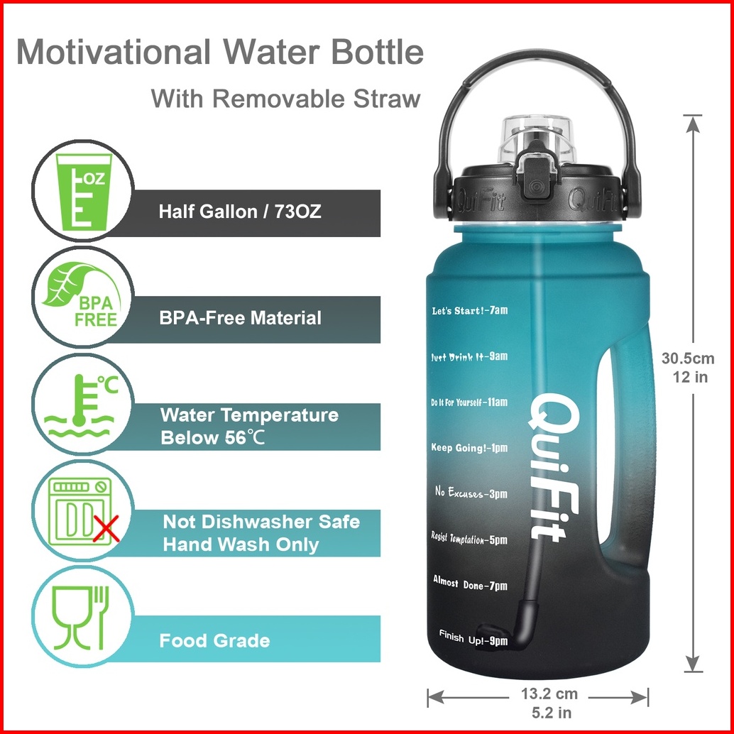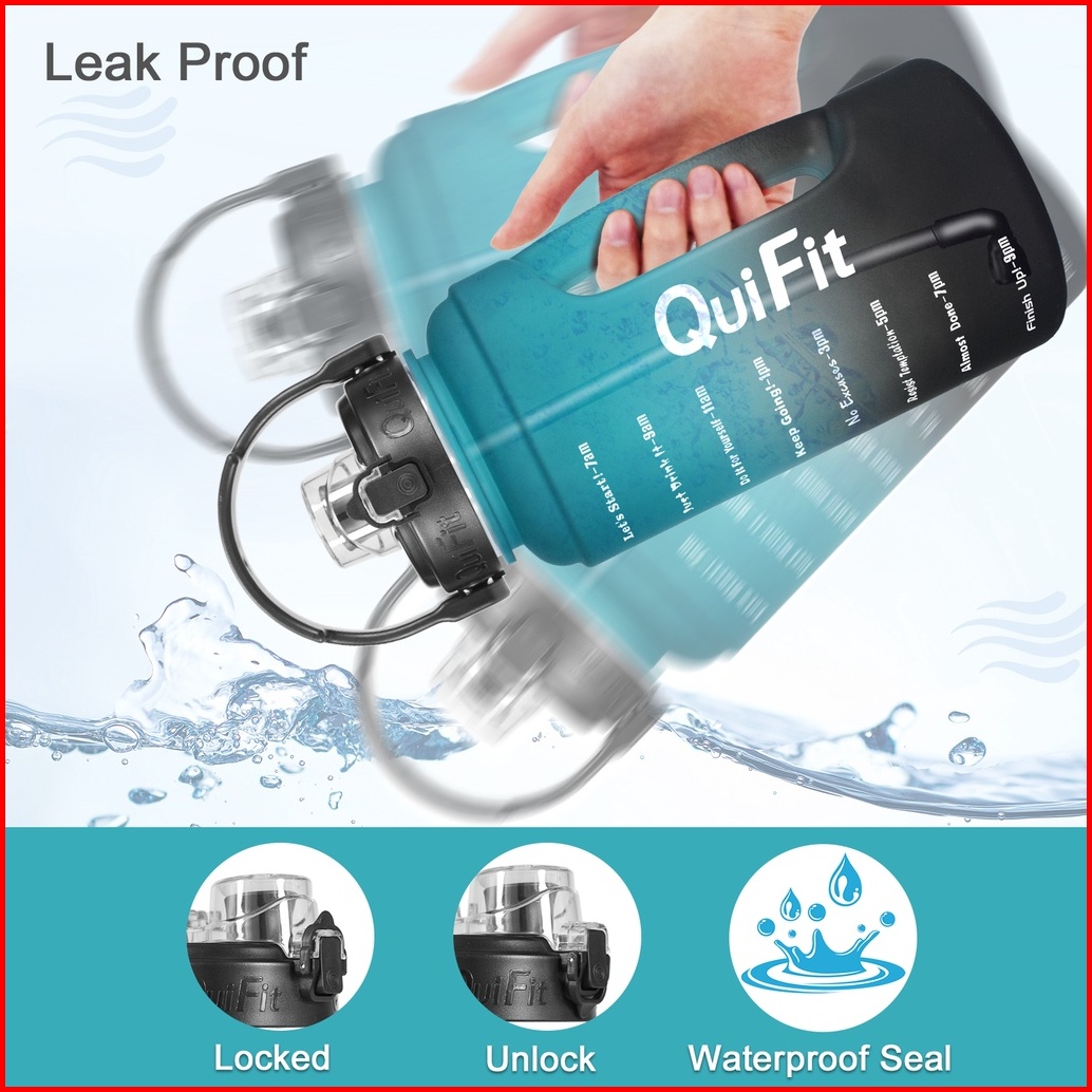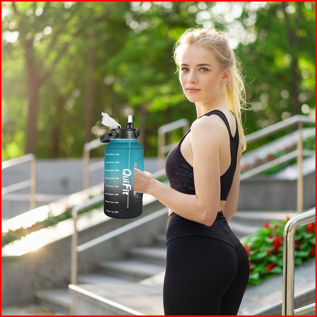 Quifit - 2.2lltx Botol Air Minum Motivasi 2.2l Dengan Sedotan Dan Phone Holder 100 Bpa Free
