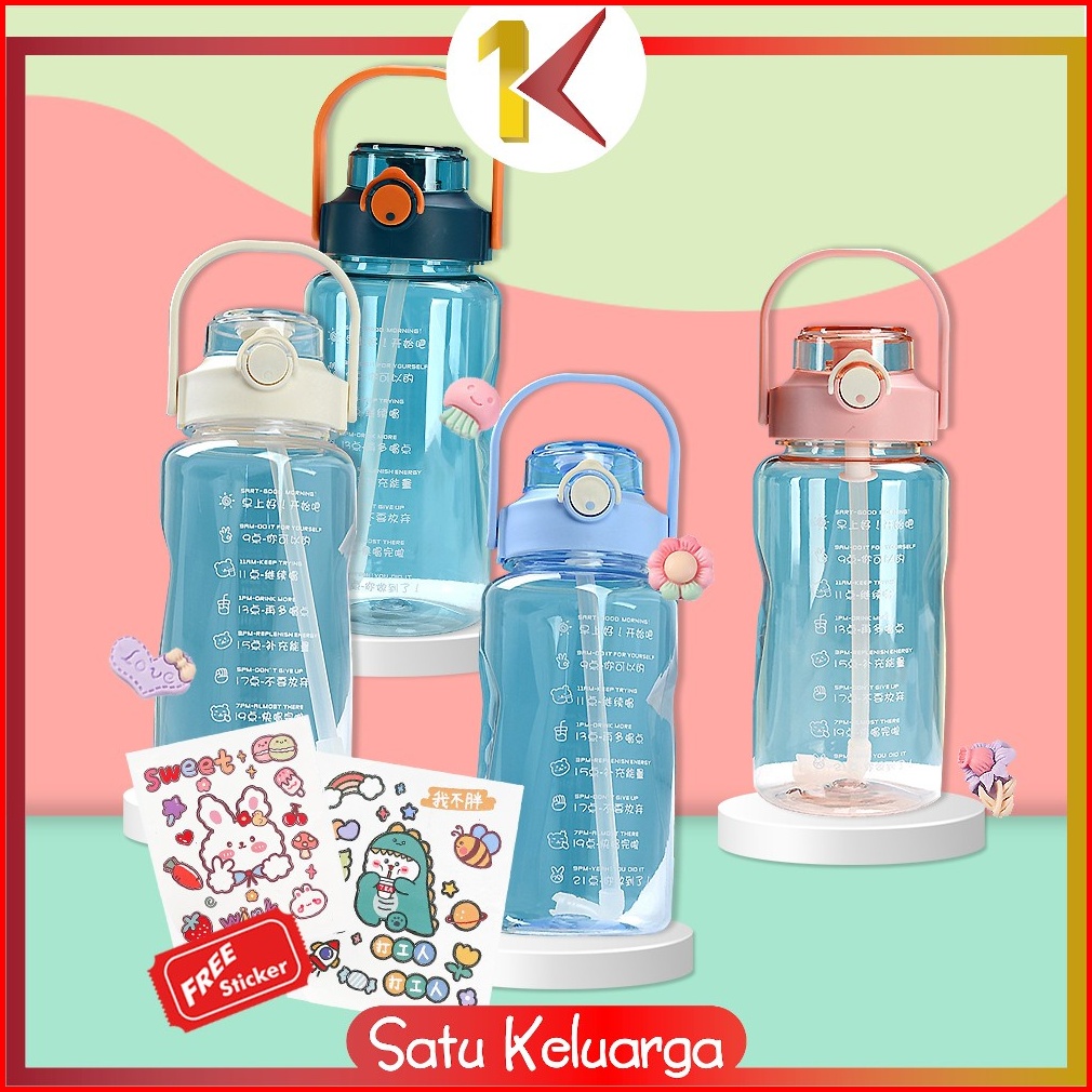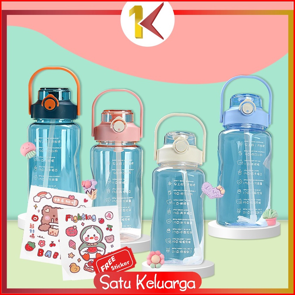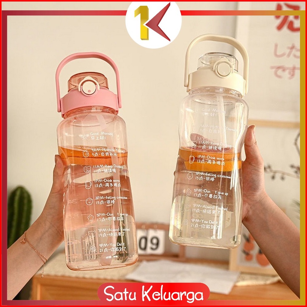 Sk-c304 C305 Botol Minum Motivasi 2 Liter Food Grade Botol Air Minum Jumbo 2000ml Bpa Free Botol Minum Sedotan Dewasa