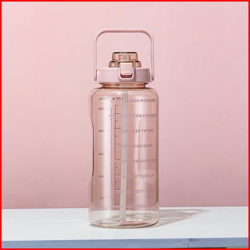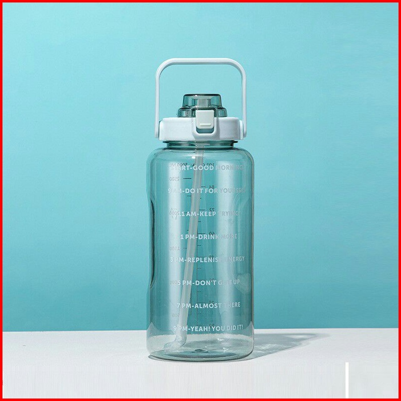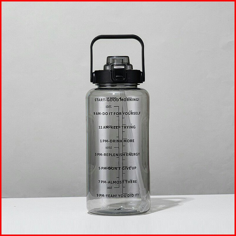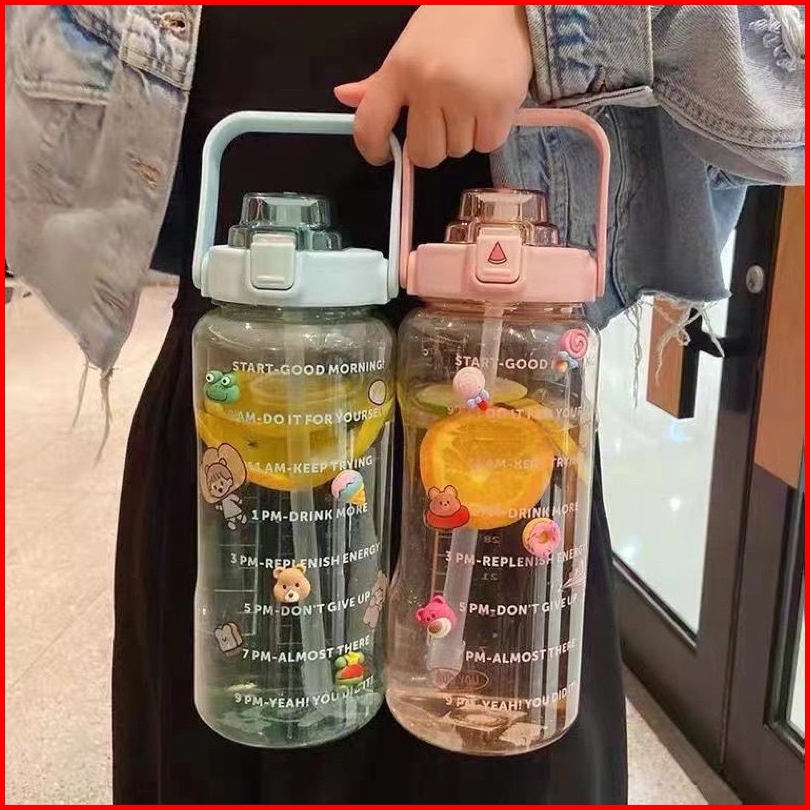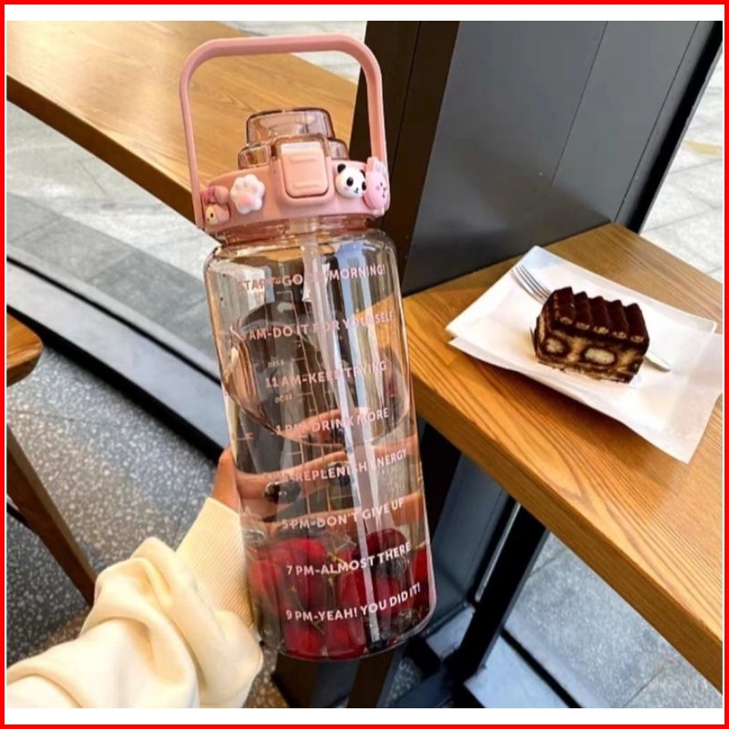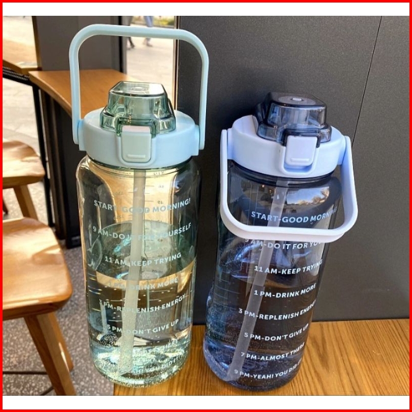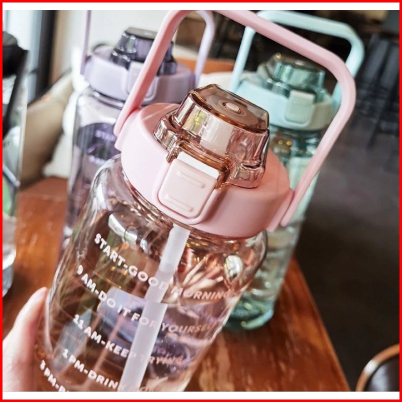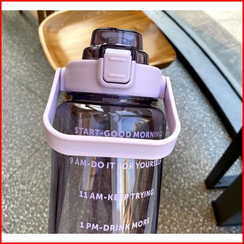 Botol Minum 2 Liter Tutup Flip Dengan Sedotan Tempat Minum Air Penanda Waktu Polos Transparan