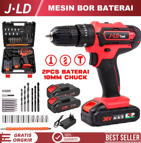 MESIN BOR BATERAI JLD / BOR LISTRIK MURAH / BOR CORDLESS JLD / 36VF MESIN BOR 2BATERAI CAS JLD 10MM BOR LISTRIK MURAH BO