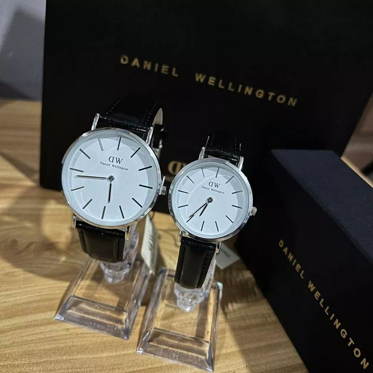 Jam Tangan Couple Tali Kulit Free Kalung Cincin Anting + Box Exclusive, Paperbag & Baterai Cadangan