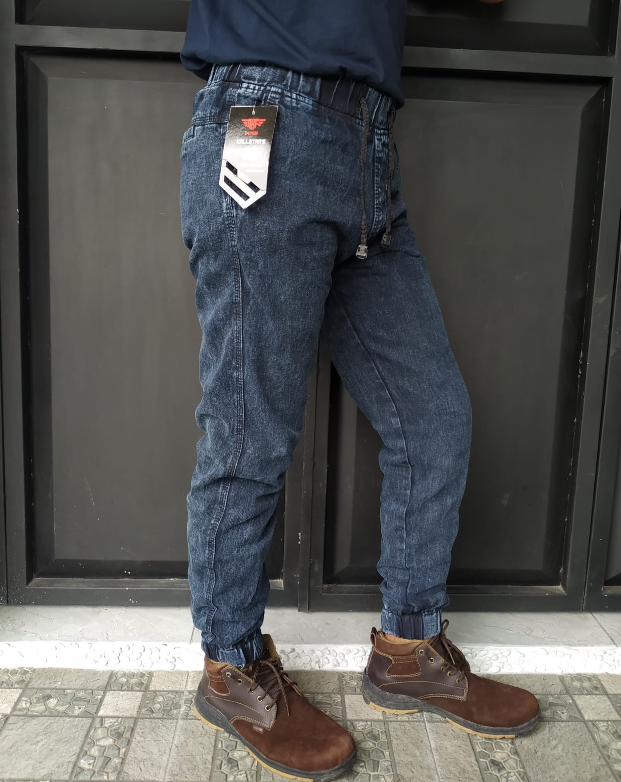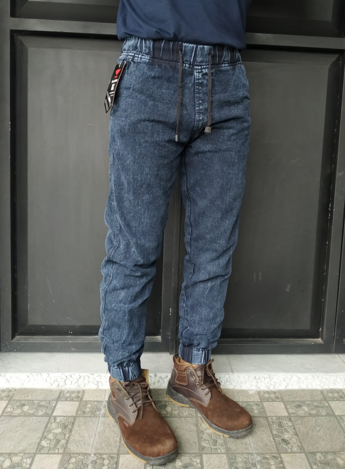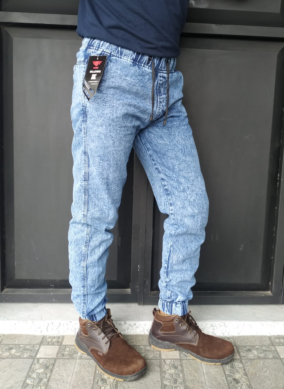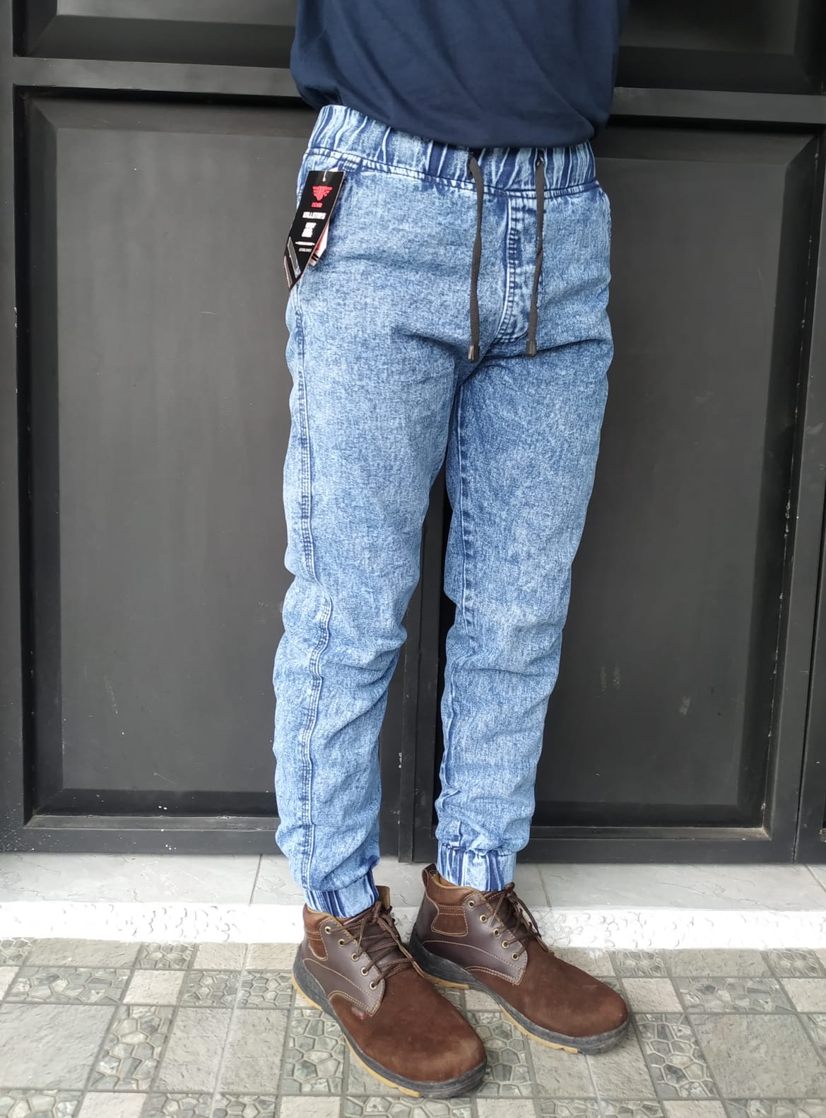 Celana Jeans joger Rip jeans panjang Snowjeans iceblue Jogger denim bluejeans Big size (27-38)