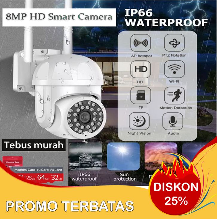 CCTV Wifi Outdoor Kamera IP 8MP Waterproof IP66=Cctv tahan air dan dapat bekerja secara normal ketika kena air hujan