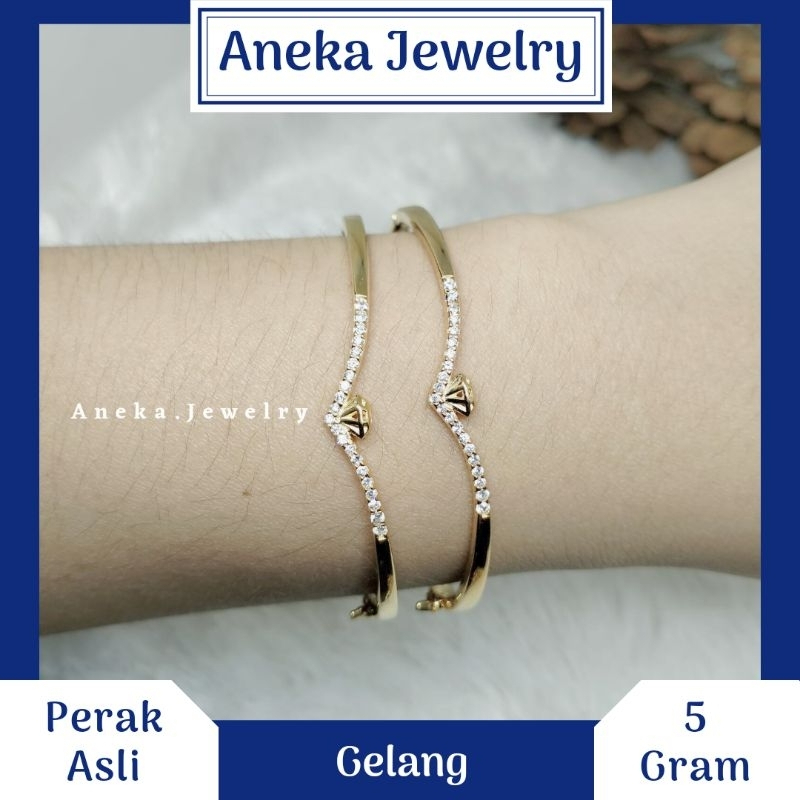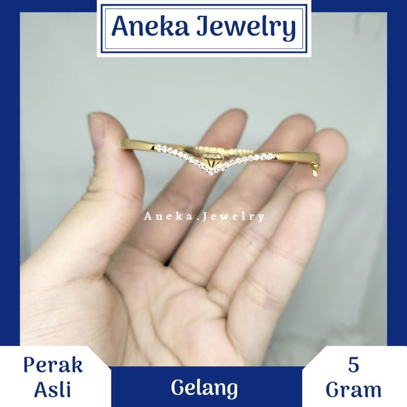 Gelangg Pipa V Baris Diiamond, Perak Asli 925