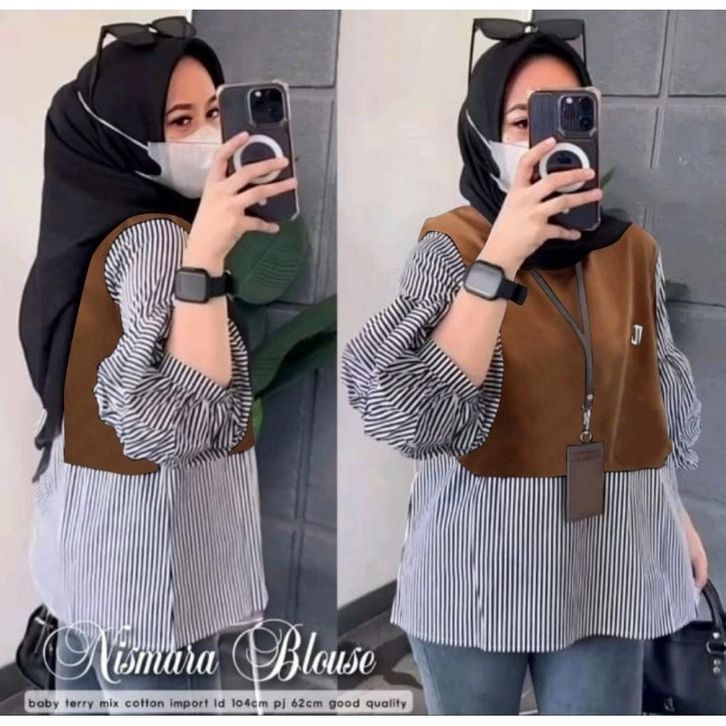 BLOUSE WANITA KEKINIAN OOTD KOREA STYLE BAJU ATASAN CEWEK FASHIONABLE ORIGINAL MOTIF POLOS GARIS GARIS TERLARIS
