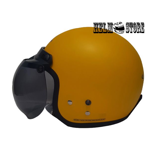 HELM CARGLOSS RETRO YELLOW DOFF + KACA CEMBUNG CARGLOSS HALF FACE SNI DOT
