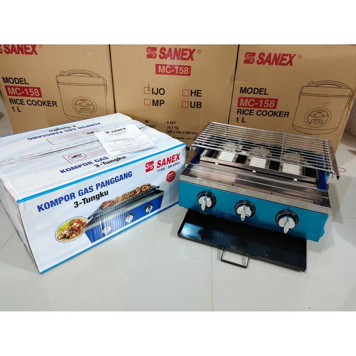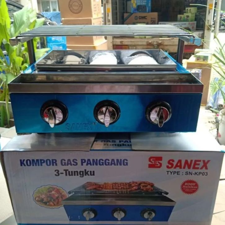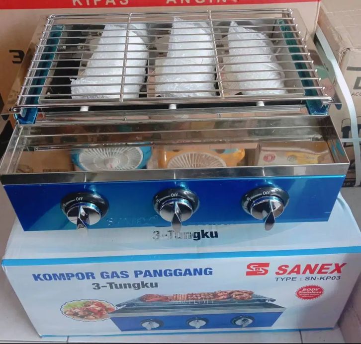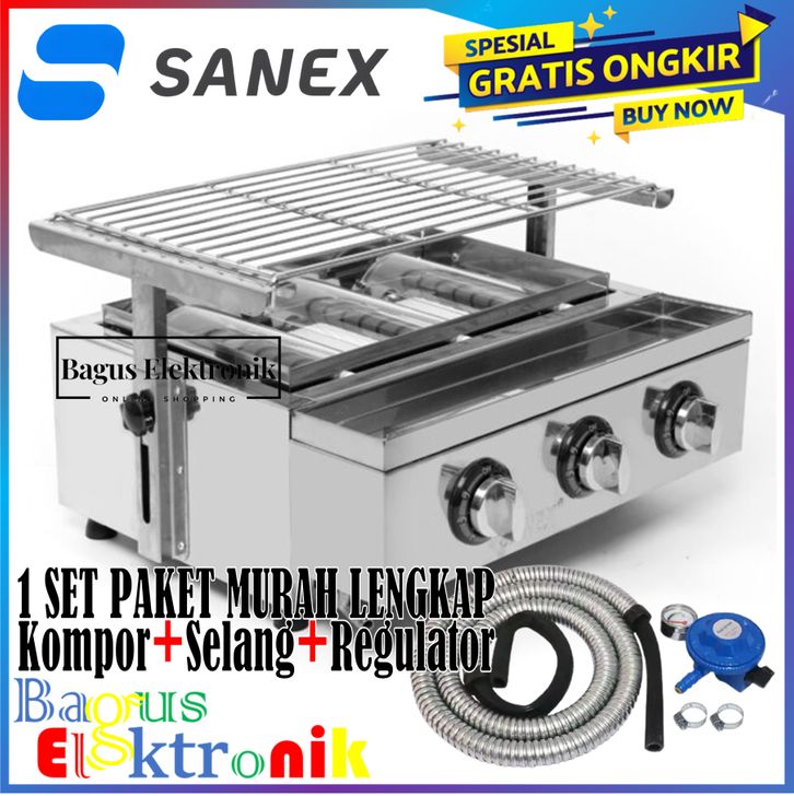 Kompor Panggang SANEX SN-KP03 Kompor Panggang Gas LPG - Pemanggang Grill BBQ Sate Sosis Bakar 3 TUNGKU Stainless Steel
