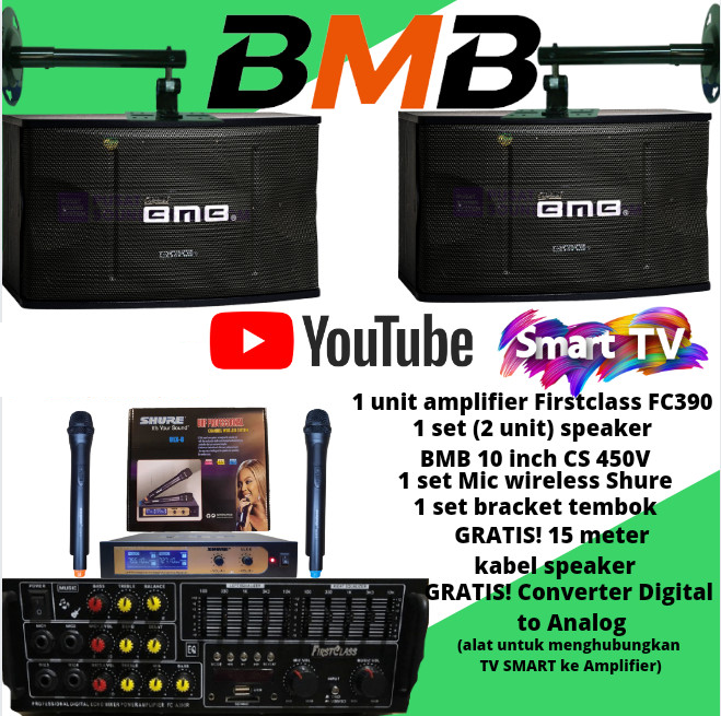 PAKET KARAOKE SOUND SYSTEM BMB 10 INCH ORIGINAL BLUETOOTH 2 MIC WIRELESS SIAP PAKAI