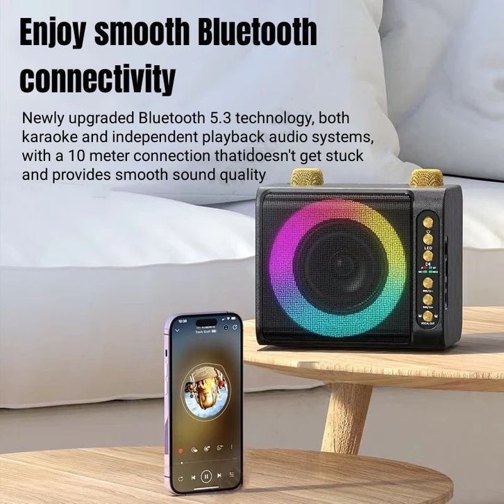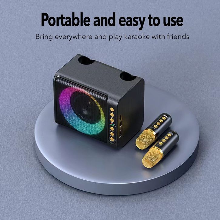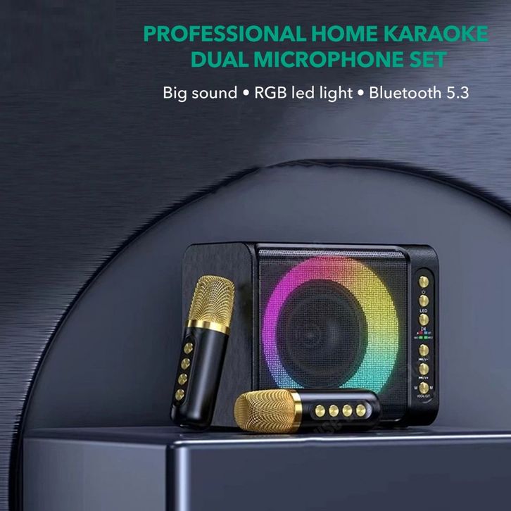 Speaker Microphone Karaoke Set 2 Mic Bluetooth Portable Full bass