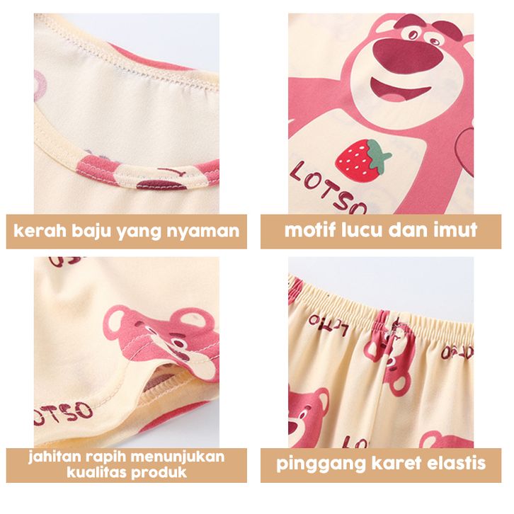 Setelan Baju Tidur Lengan Panjang Untuk Anak Perempuan Laki Laki Piyama Anak Print Kartun Lotso Spongebob Terbaru 2026