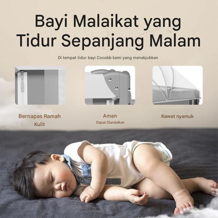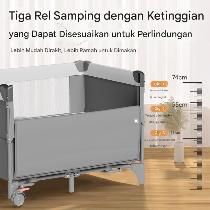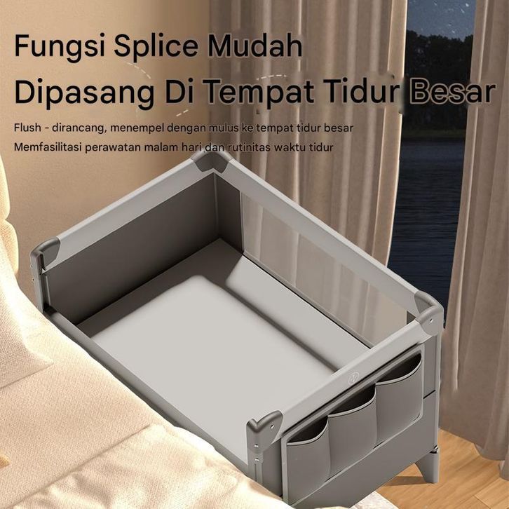 Tempat Tidur Bayi Box bayi Ranjang bayi Buka Samping Kasur Bayi Set Kelambu Bisa dilipat