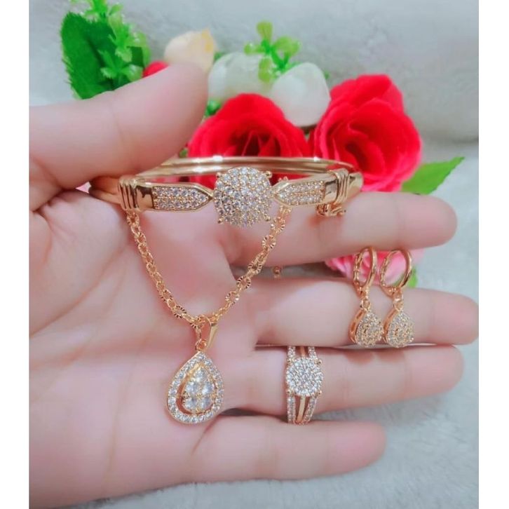 Perhiasan wanita dewasa satu set cincing kalung gelang anting permata mata satu Bunga cincin titanium anti karat
