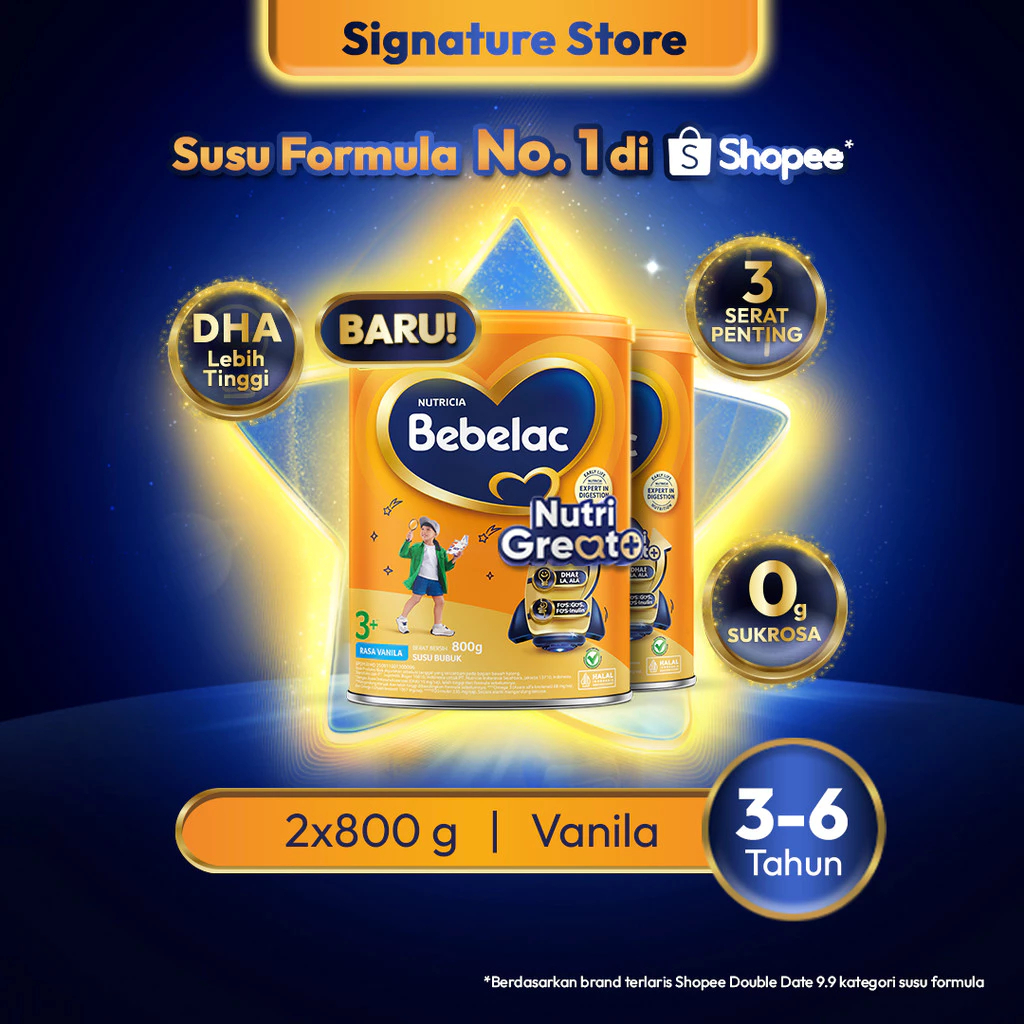 Paket 2 Kaleng Bebelac 3+ ( 3 - 6 Tahun ) Madu Vanila Susu Pertumbuhan Bubuk 800gr x2