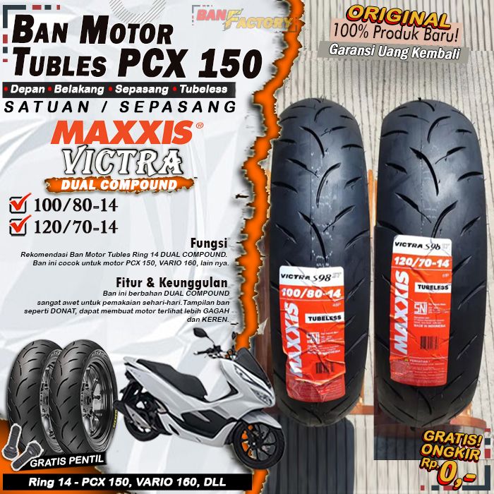 Sepasang Ban Motor Tubles PCX 150 VARIO 160 MAXXIS VICTRA Ring 14 Ban Motor Tubeless Depan Belakang PCX Ring 14