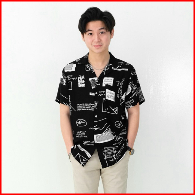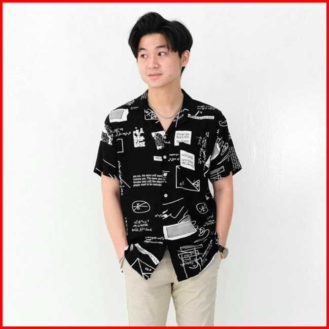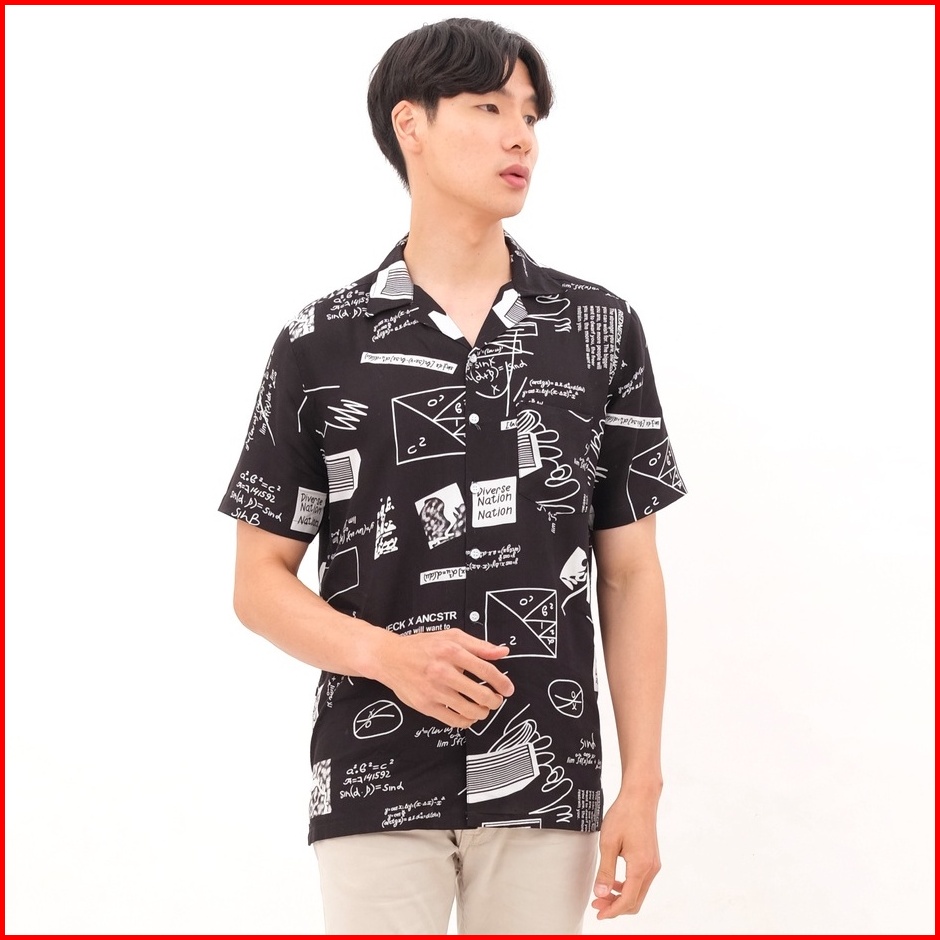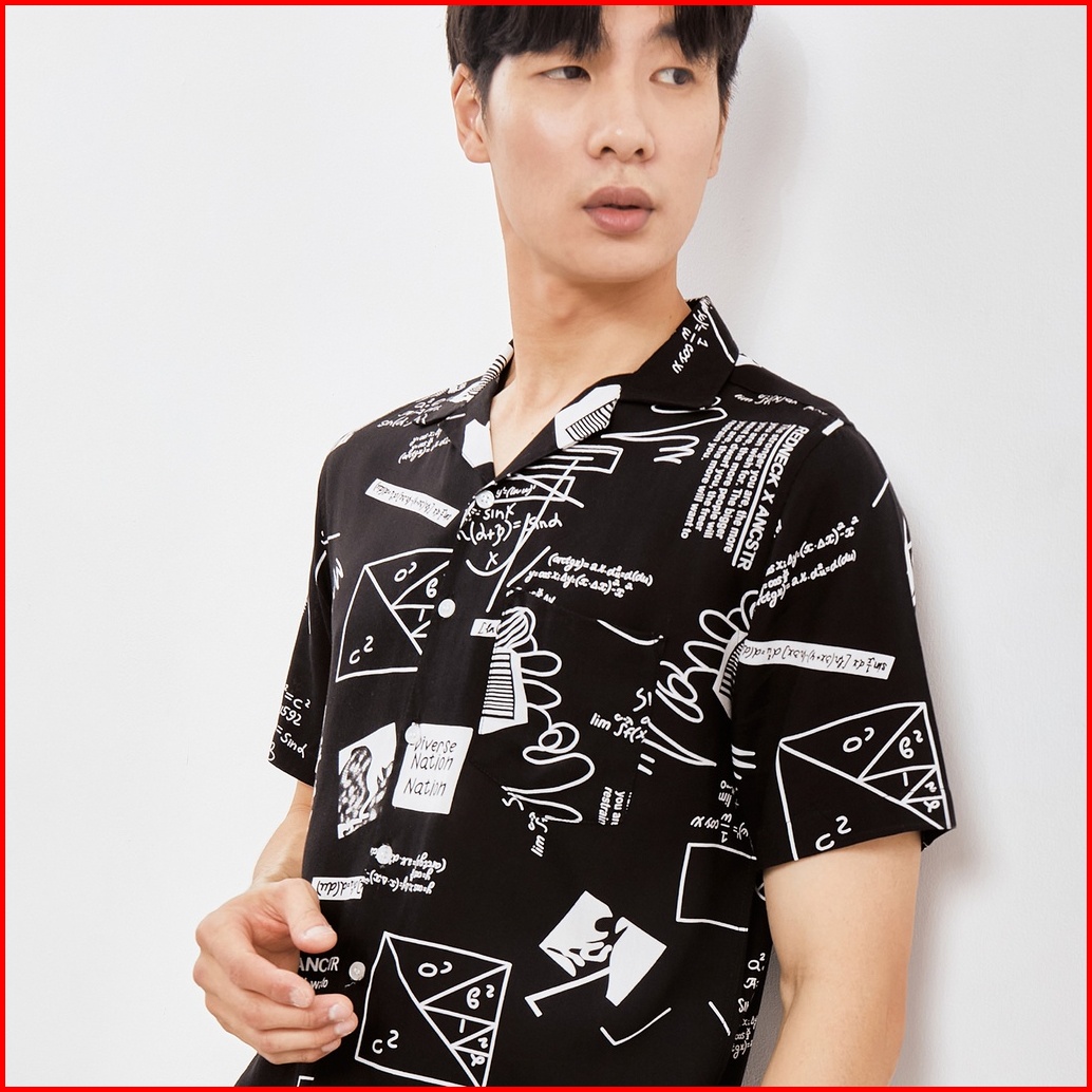 Sanvanina Kemeja Hawai Pria Kekinian Printing - Math Black Casual Shirt E-2010