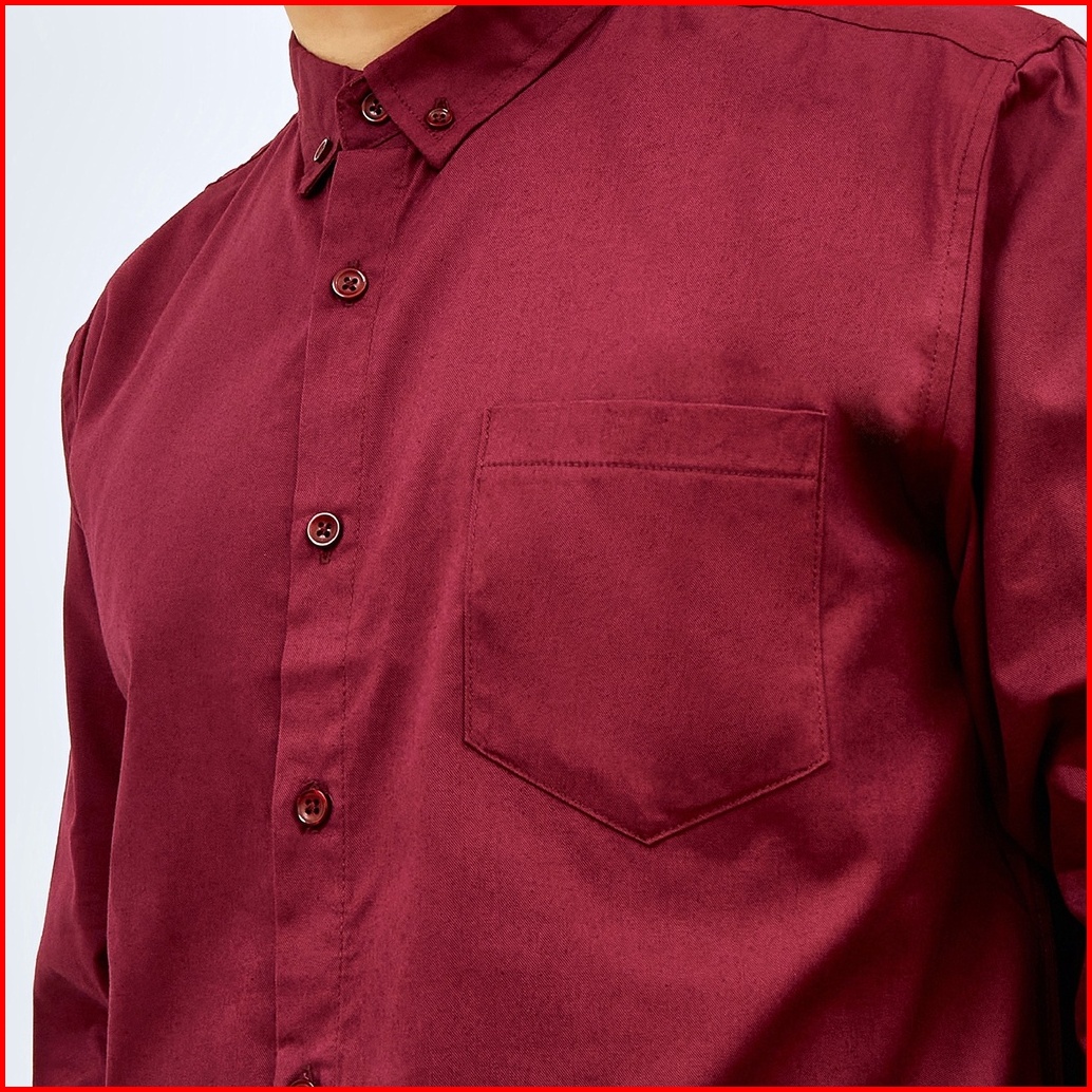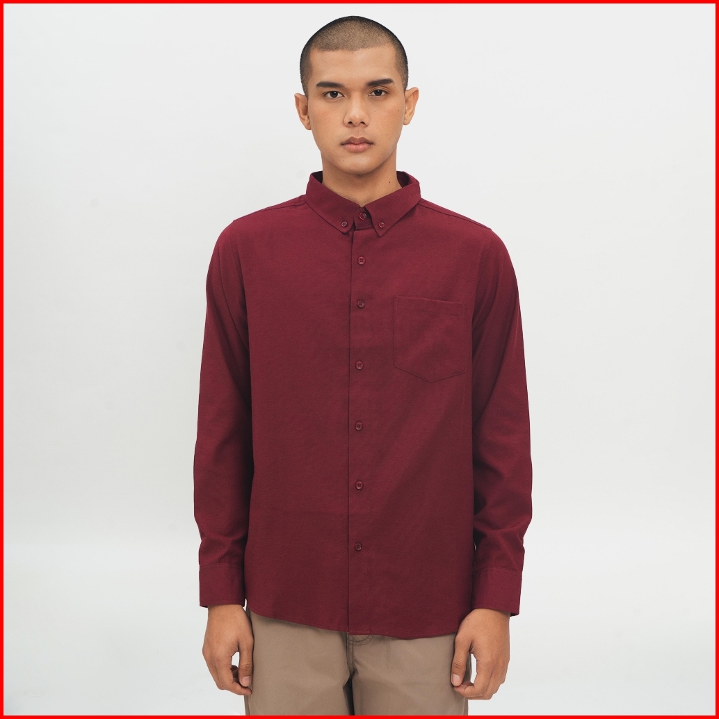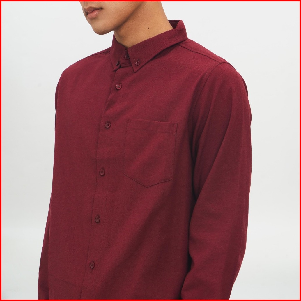 M231 Kemeja Pria Basic Polos Oxford Panjang Maroon 1456p