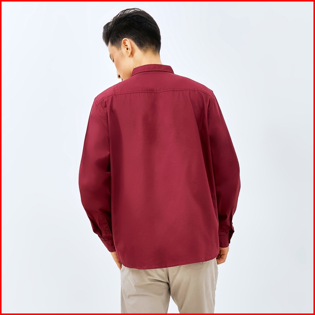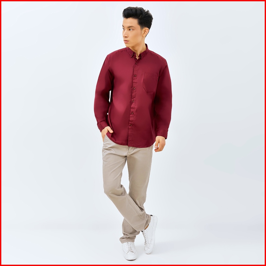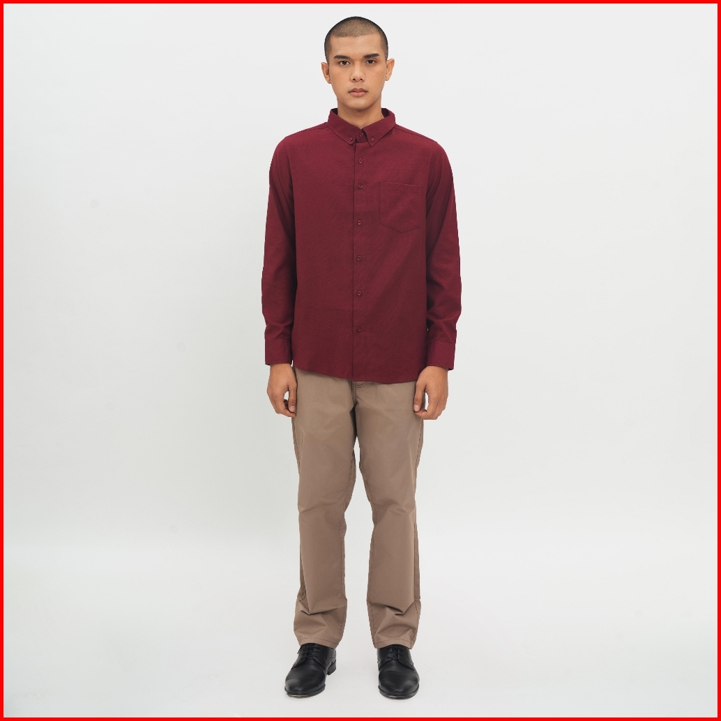 M231 Kemeja Pria Basic Polos Oxford Panjang Maroon 1456p
